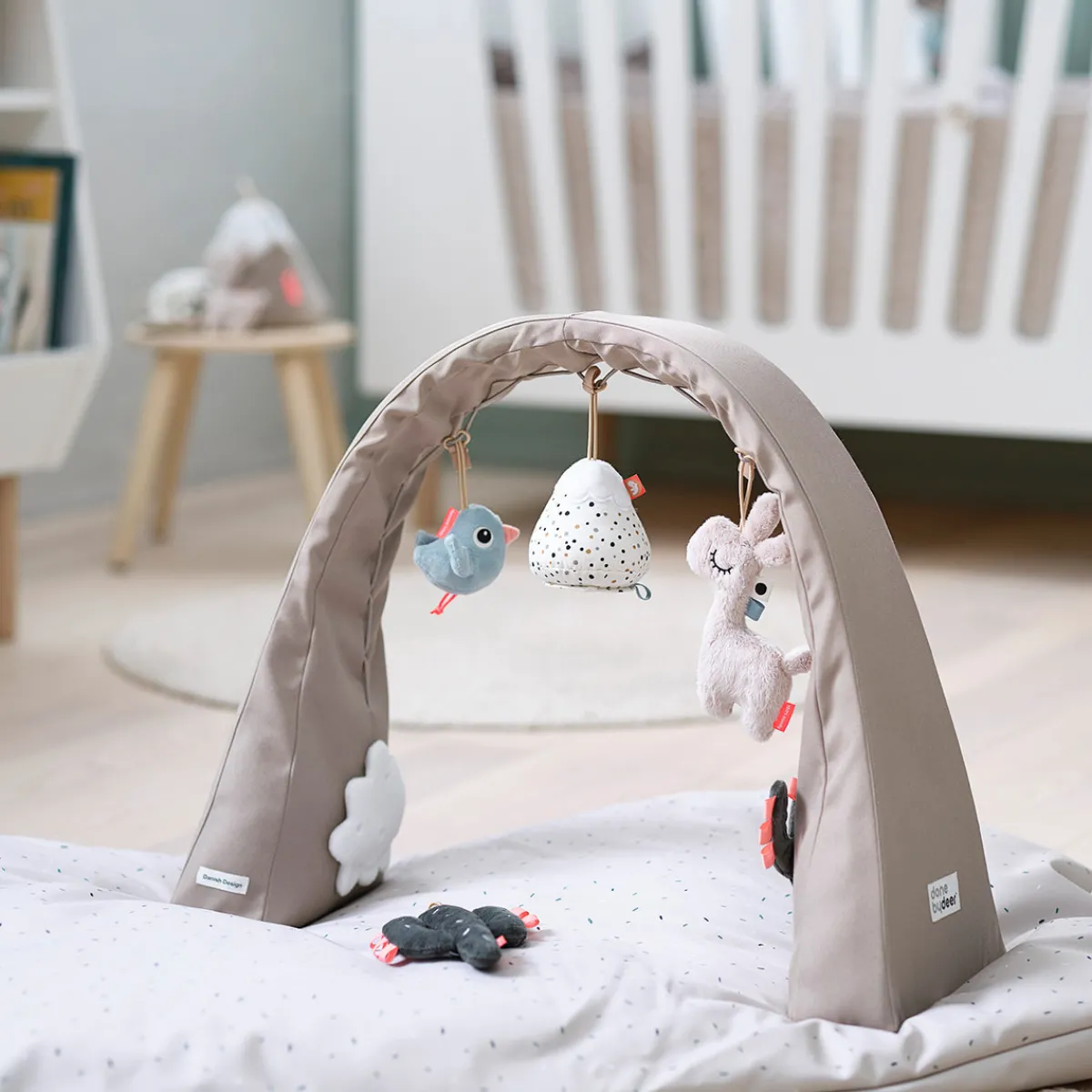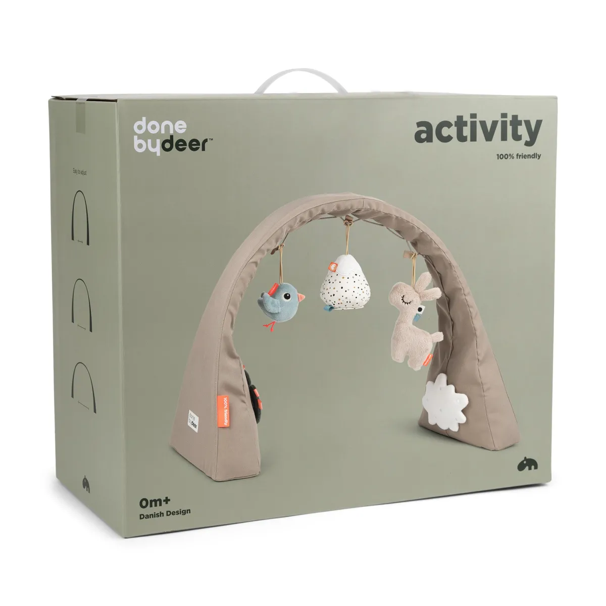 Done by Deer, der har vundet Red dot-prisen for Aktivitetsbue – nu med Lalee – er fritstående og nem at justere, så den passer til din baby. Tag aktivitets legetæppet i sand og brug det på legetæppet, puslepladsen, læg det i tremmesengen eller tag det med, når du skal ud & about.