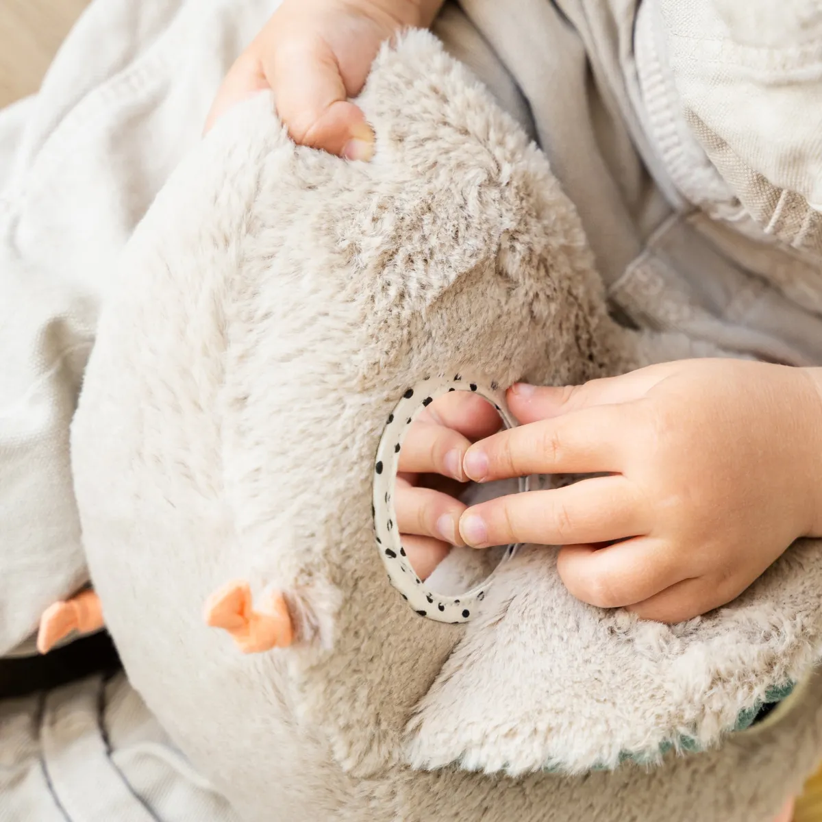 Med kontrastfarver, nænsomme lyde og en række forskellige teksturer opfordrer gemmelegetøjet til visuel, auditiv og taktil stimulering. Det understøtter tidlig koordination, koncentration og praktisk nysgerrighed og holder samtidig den lille underholdt.
