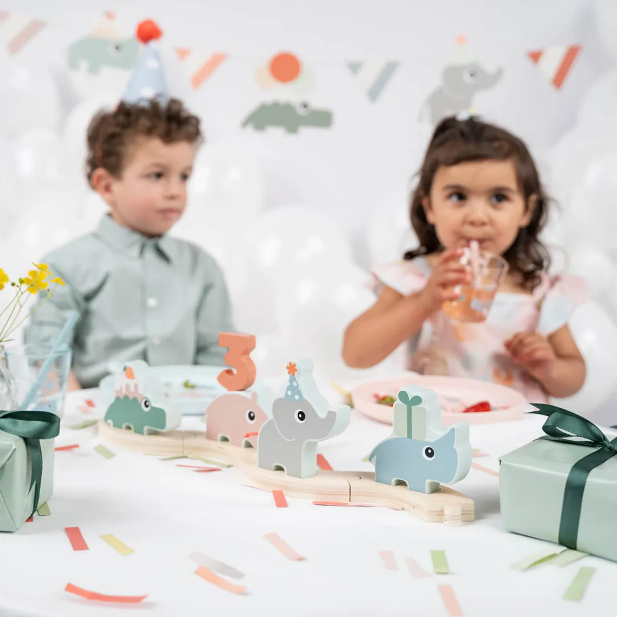 • Sød og sjov parade med Deer friends-motiv, der passer til selv den mindste fest