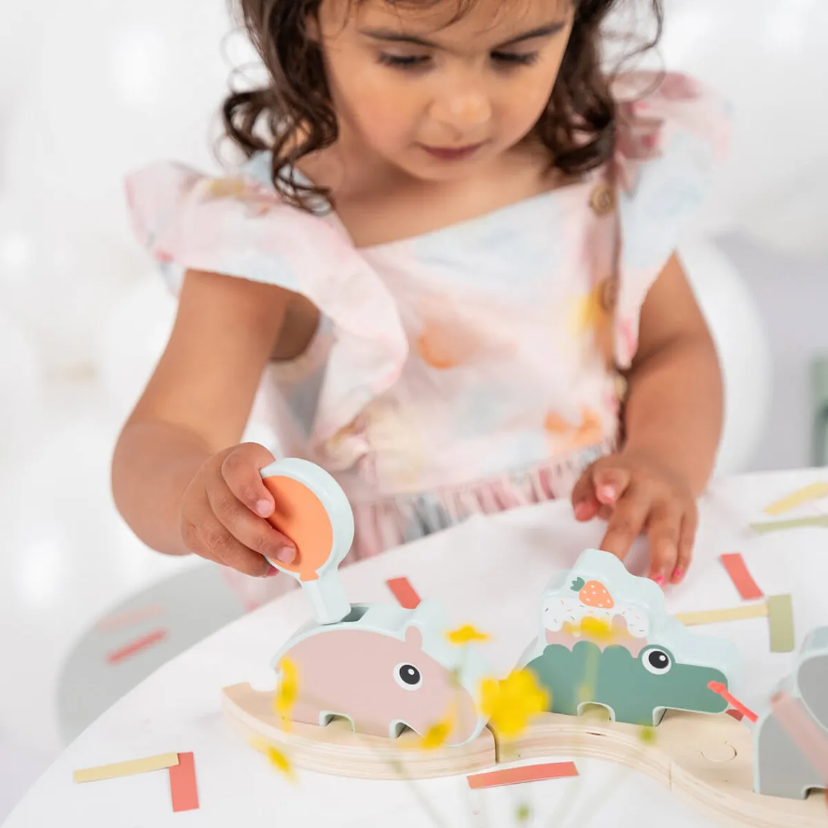 Brug denne charmerende parade som et dekorativt midtpunkt eller et fødselsdagstog. Paraden er lige så sjov at lege med, som den er at vise frem, og børn vil elske at lege med Deer friends og tælle tallene, mens de fejrer.