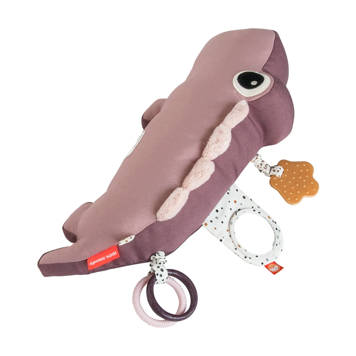 Med ringe og en Mustard-bidering til at lindre kløende gummer, taktile teksturer, et lille spejl, mærker, knitre-lyde og en sitrende Croco-mave er der masser af aktiviteter at udforske for dit barn.