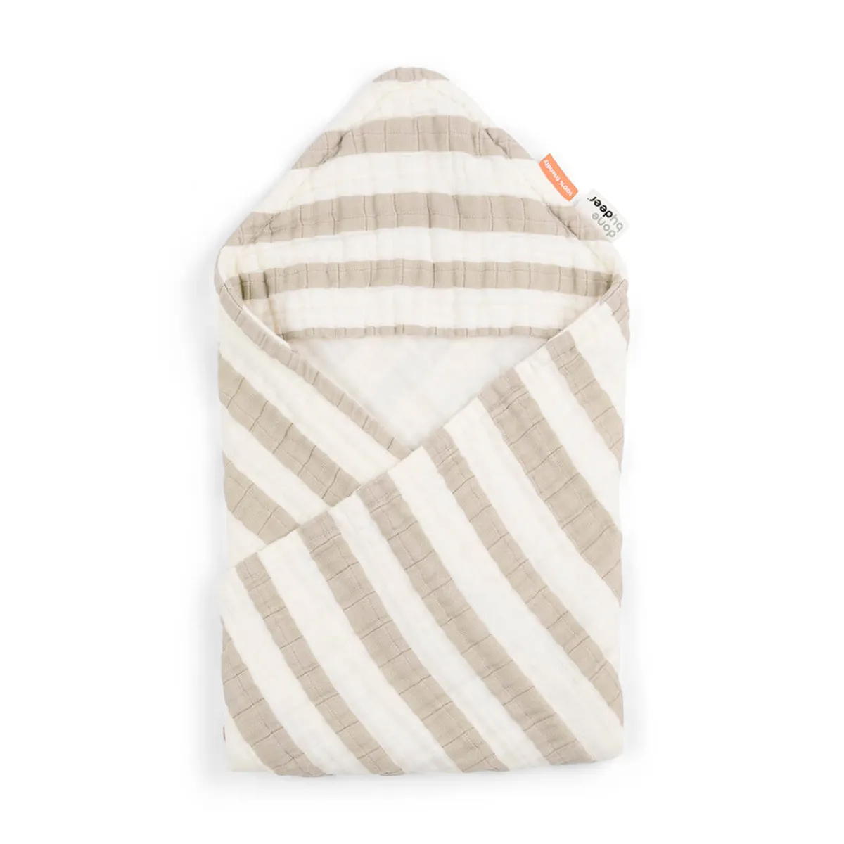 Hættehåndklædet med brede striber er perfekt til at pakke de små ind i og tørre dem efter et dejligt bad. Det bløde håndklæde af økologisk bomuld i flere lag er let, glat mod huden og tørrer hurtigt på en tur til stranden.