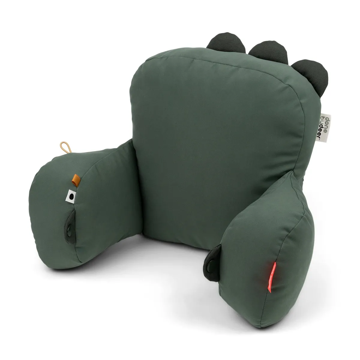 Børnene vil nyde at gå tur med den søde krokodille-barnevognspude i grønne toner.