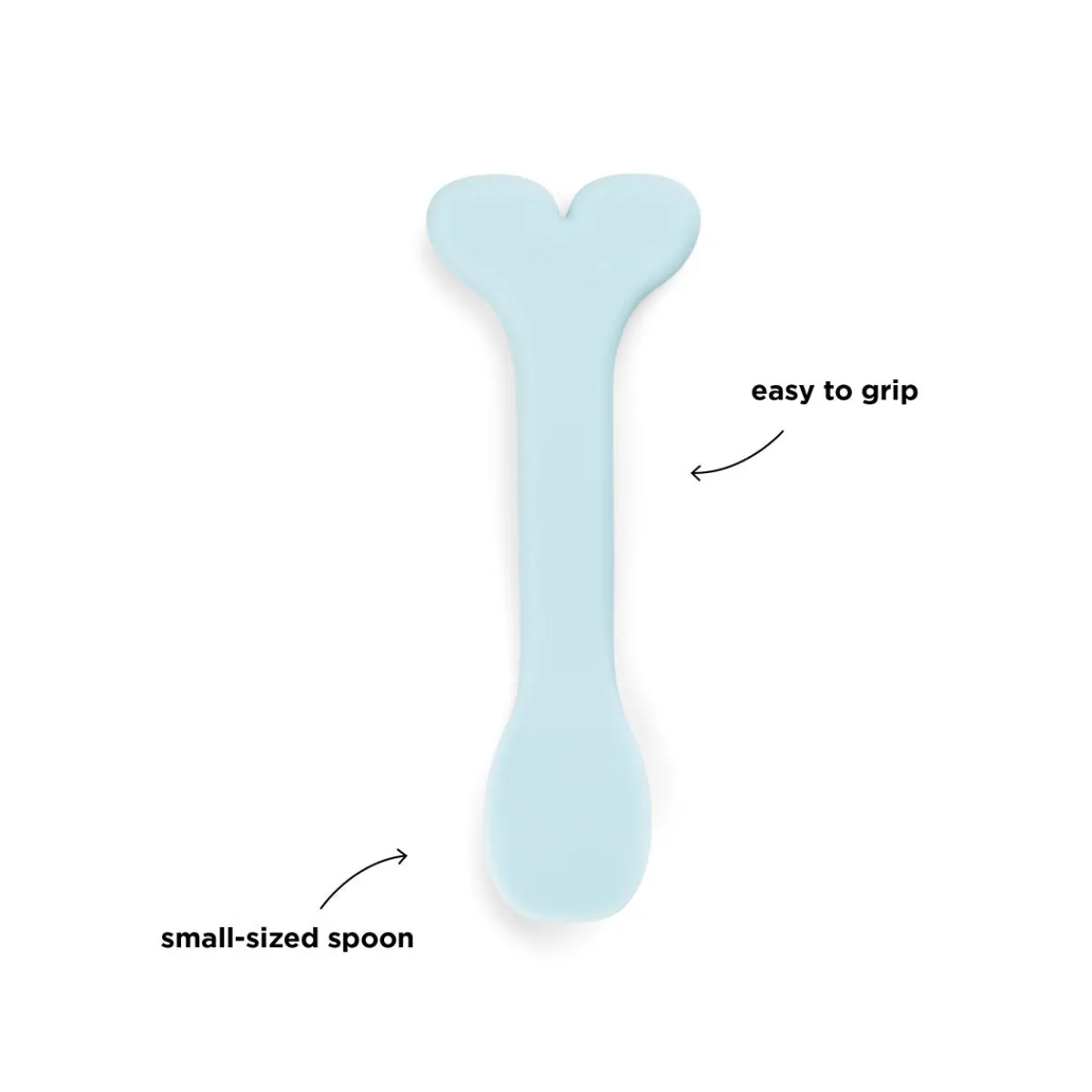 Den lille størrelse og blødhed gør den perfekt som dit barns første ske. Den er velegnet til både at fodre og spise med. Et logo på bagsiden af skeen giver håndtaget ekstra struktur og et godt greb for barnets hænder.