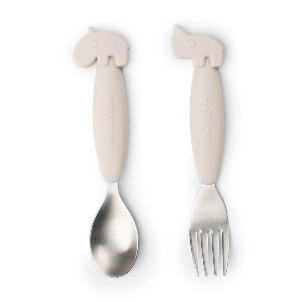 Deer friends Easy-grip bestik med ske og gaffel sikrer et stabilt greb og hjælper med at holde små spisere fokuseret på opgaven. At have de perfekte redskaber er afgørende for at gøre det sjovt at lære at spise selvstændigt.