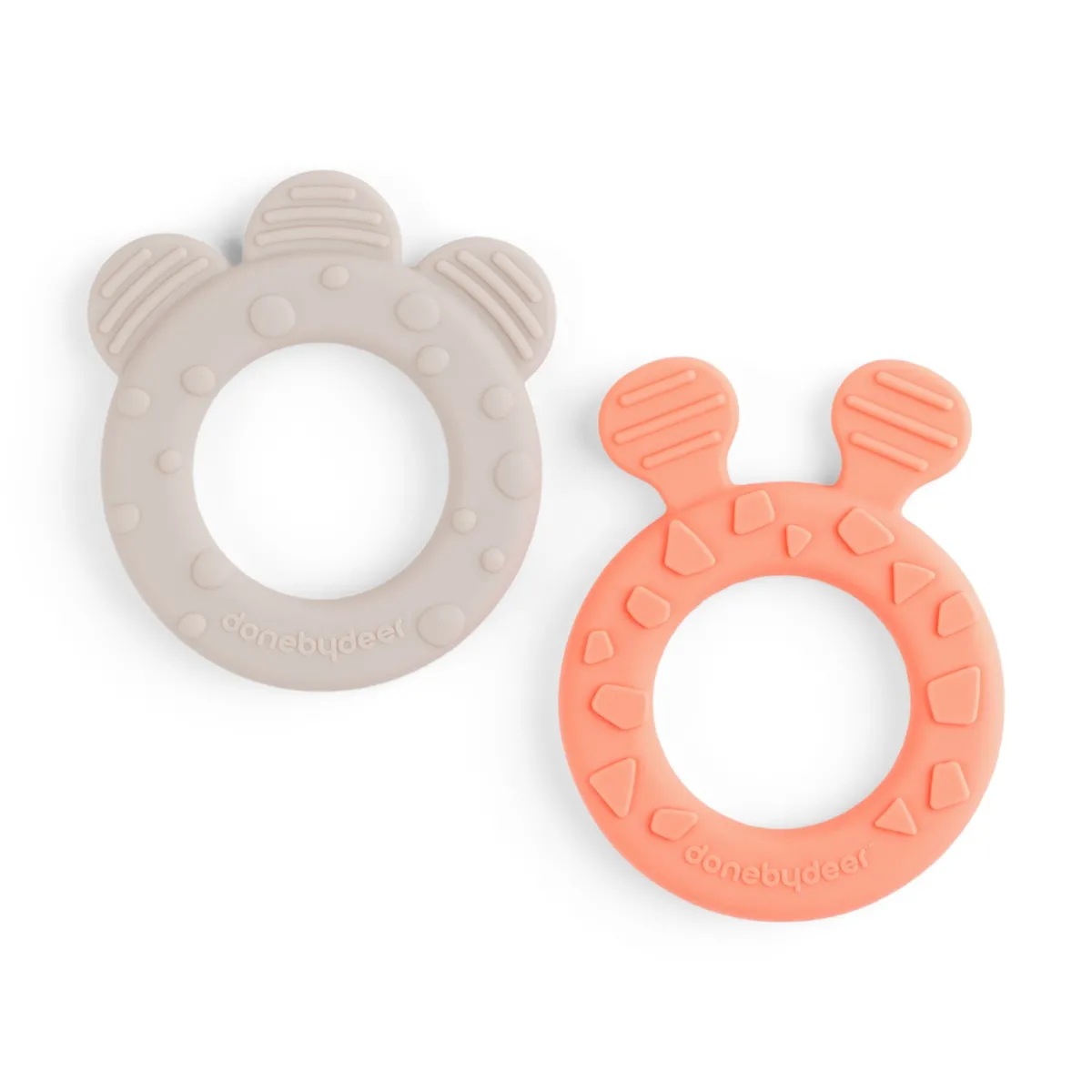 – Forskellige former og teksturer stimulerer din baby og lindrer ømme, kløende gummer