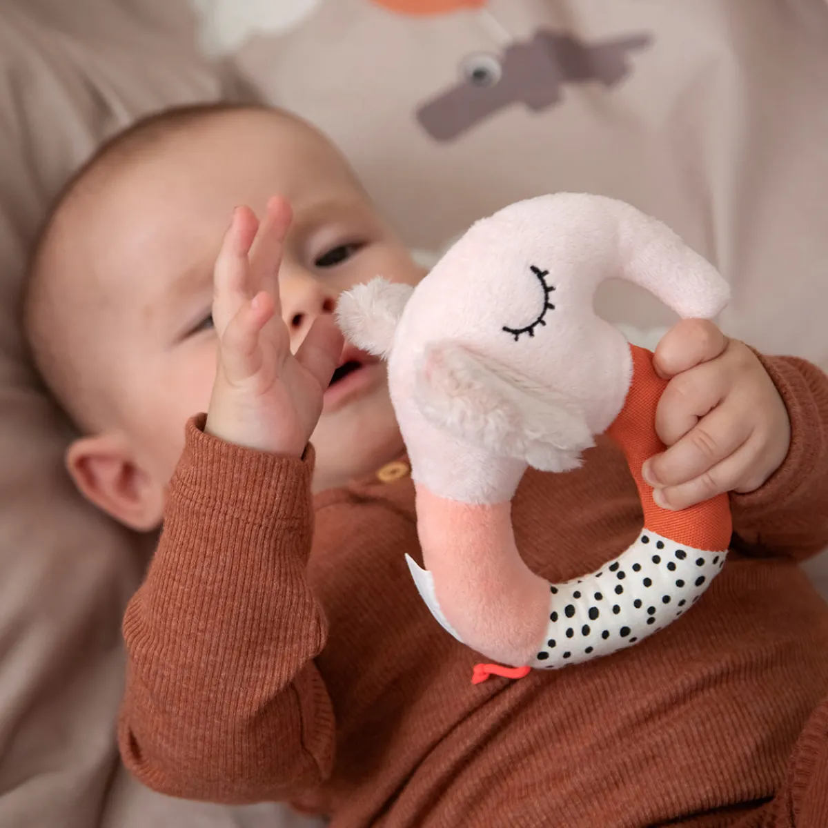 – Rangle med kontrastfarver og knitre-lyde, der underholder og stimulerer din babys sanser