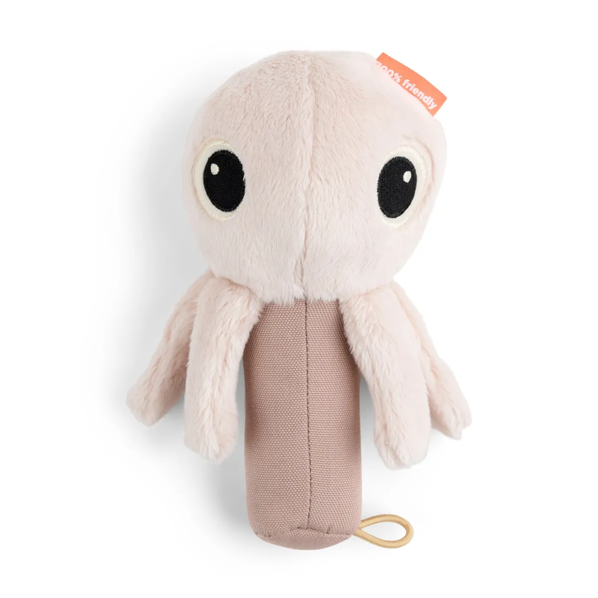 Ranglen med Jelly har bløde sensoriske ben, der knitre, når nysgerrige små hænder begynder at udforske. Håndtaget er nemt for små børn at gribe fat i, og når man klemmer på det, kommer der en pibende lyd. Ryst den lille vandmand, og den vil give en sød ranglelyd fra sig.