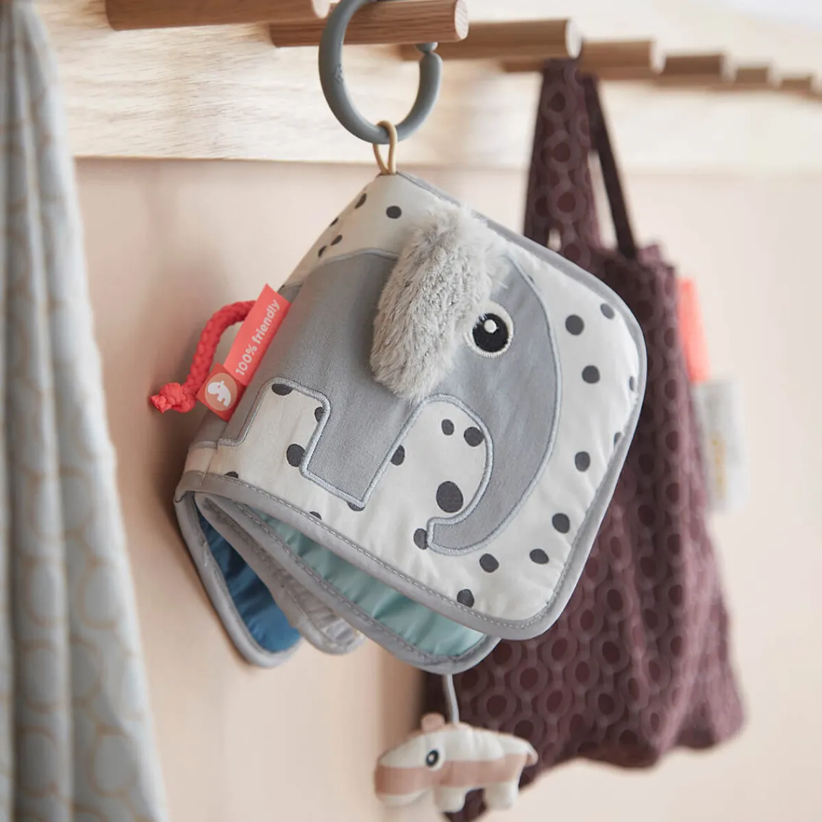 Alle funktionerne i denne bløde Aktivitetsbog fra Elphee er med til at stimulere dit barns sanser.