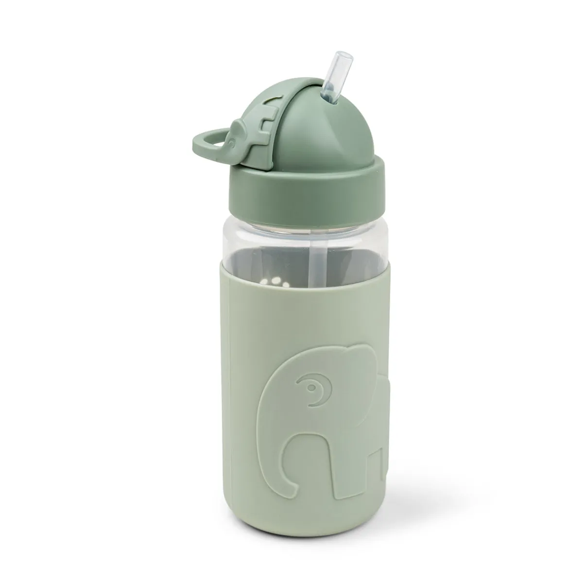 Silikoneovertrækket er præget med Elphee og har søde huller formet som Elphees fodaftryk. De grønne toner omfavner flasken.