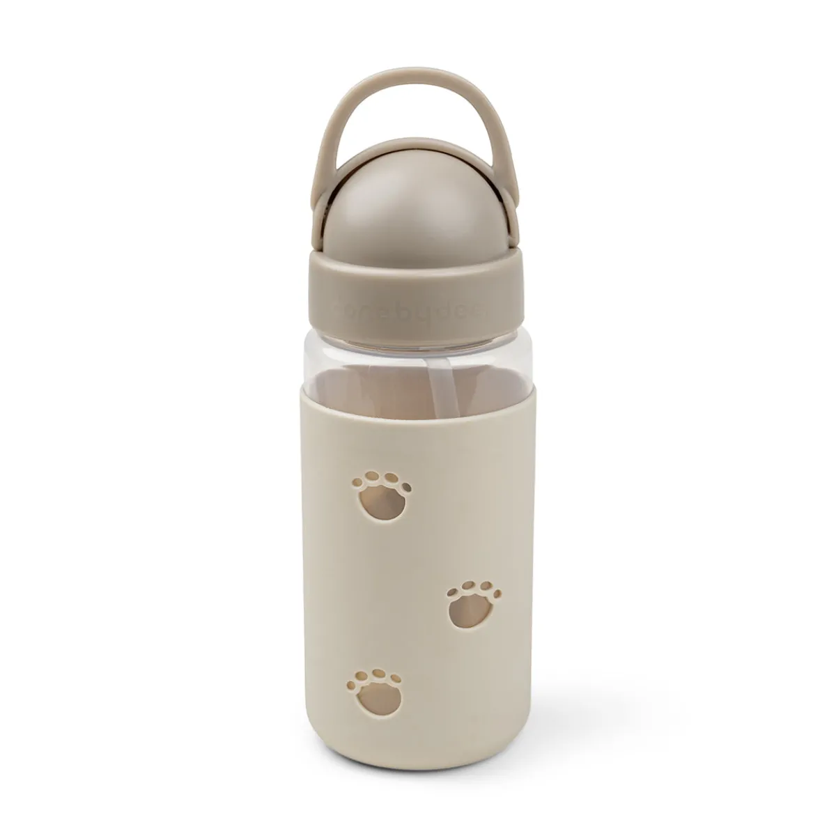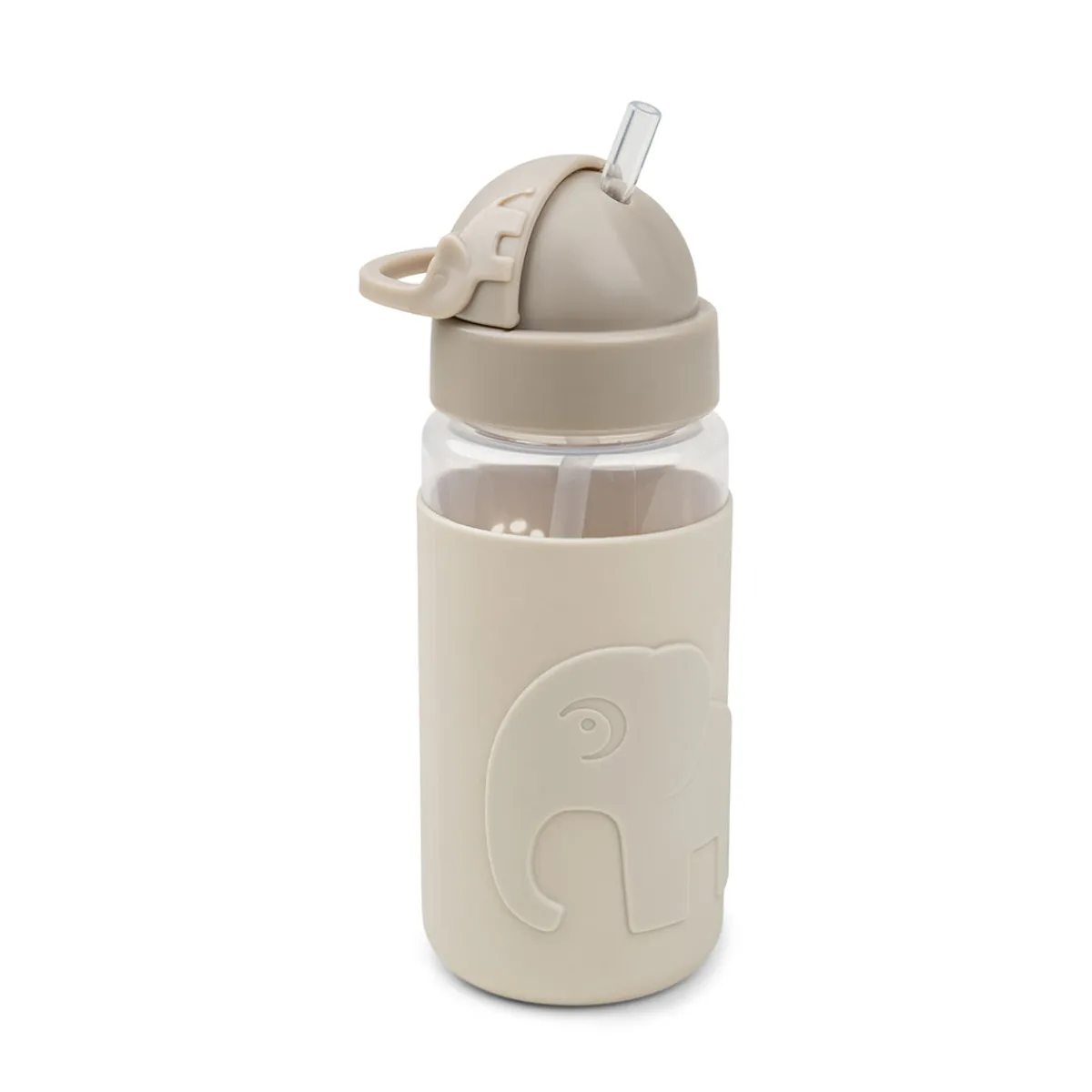 Silikoneovertrækket er præget med Elphee og har søde huller formet som Elphees fodaftryk. De sandfarvede toner omfavner flasken.