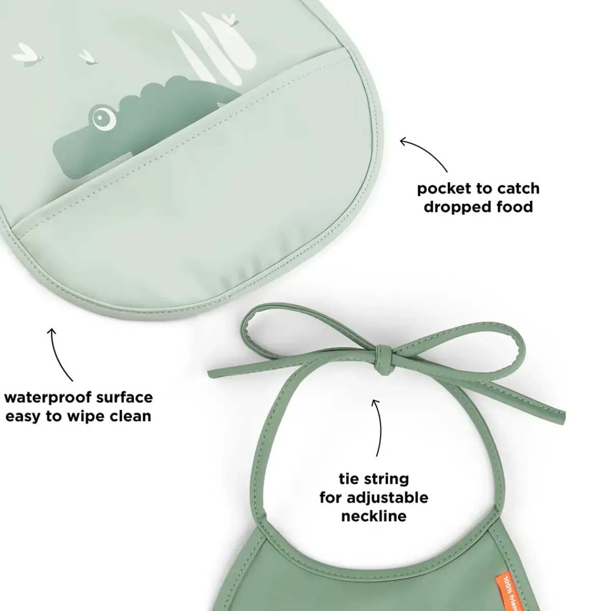 Vores lille hagesmæk i 2-pak er en sød tilføjelse til dit barns nye måltidsrutine. Disse charmerende hagesmække kommer i kølige grønne nuancer og har legesyge motiver af Croco og Birdee.