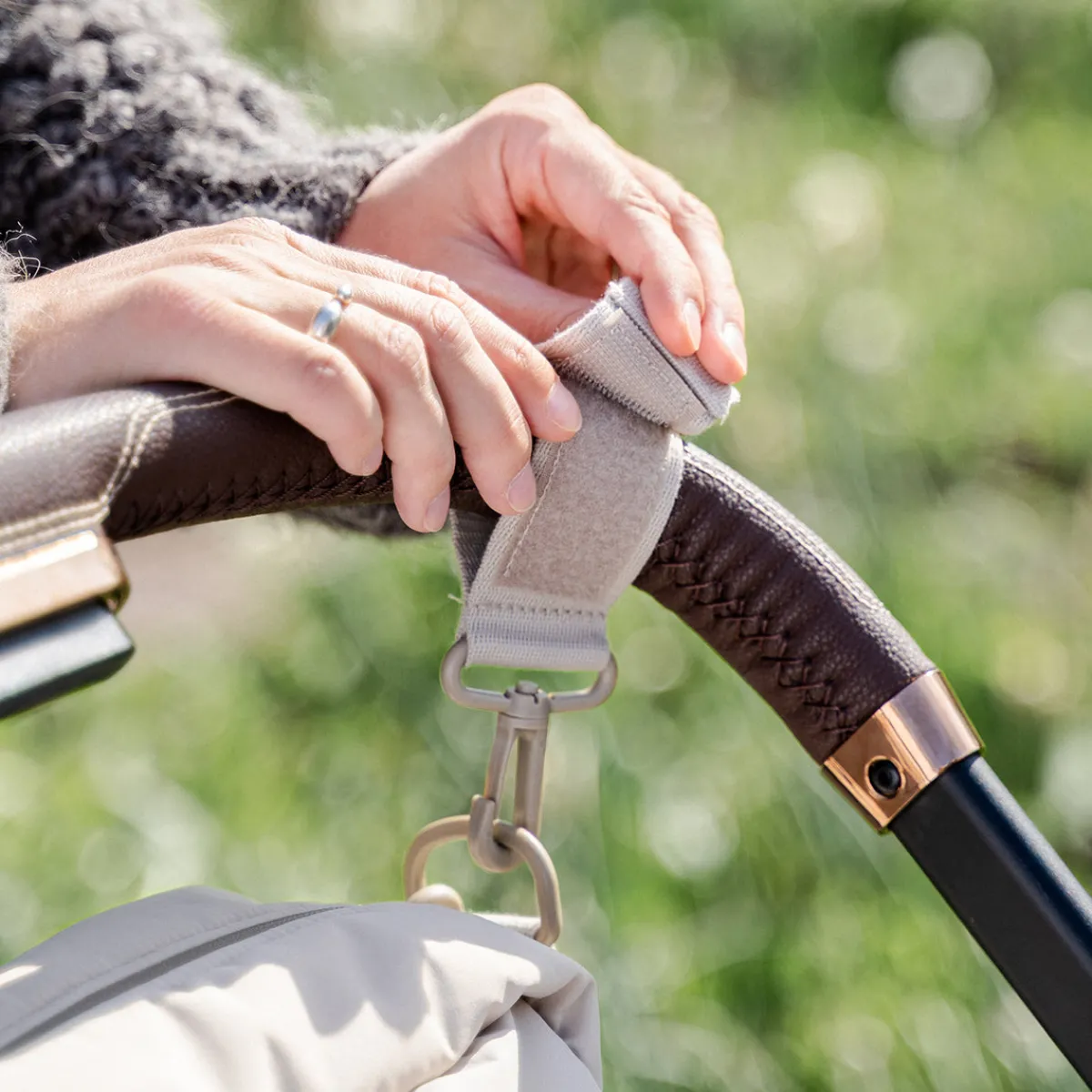 • A flexible shoulder strap and pram hooks are included