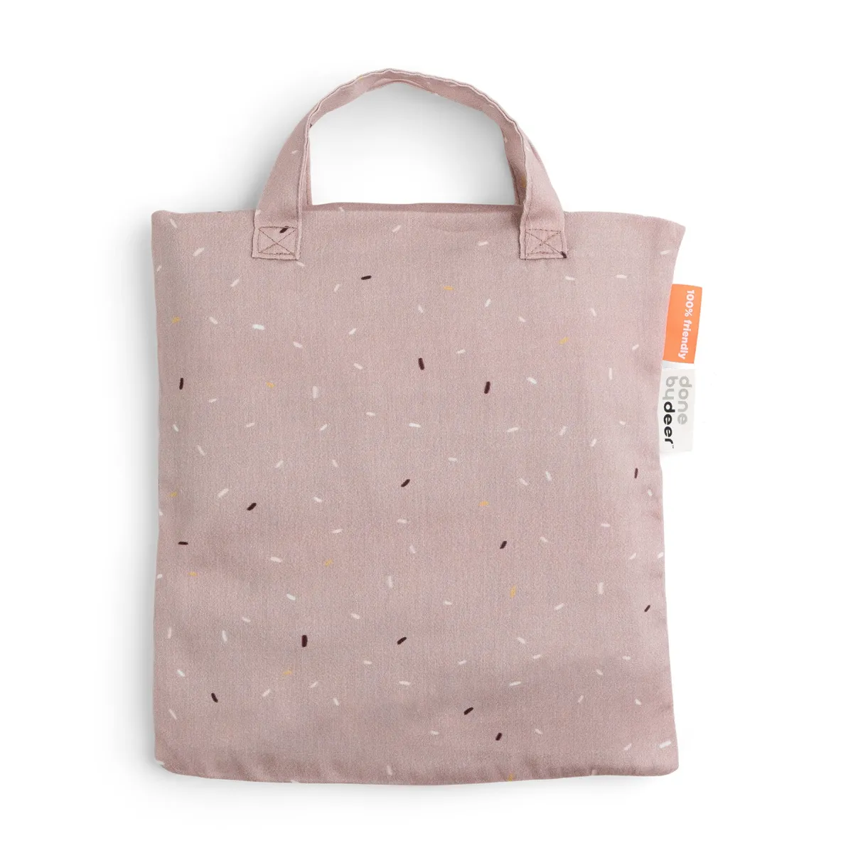 – Pakket i en lille tote bag i bomuld, der matcher sengesættet, og som kan bruges til legetøj, skiftetøj, sko eller andre praktiske formål