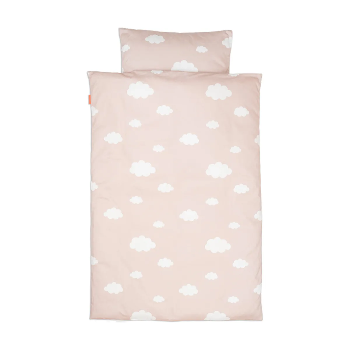 – Blødt pudderfarvet junior sengesæt dekoreret med Deer friends Elphee og Birdee, balloner og skyer