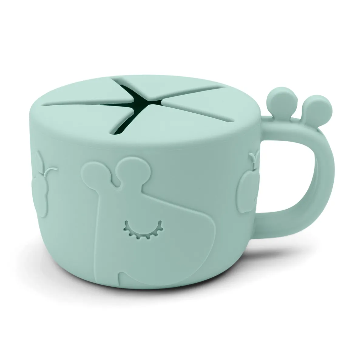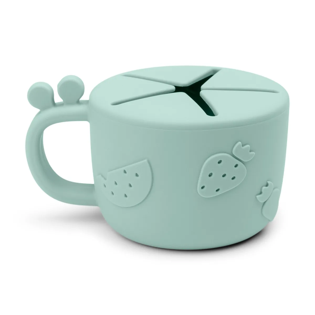 Den blå kop er praktisk til barnets snacks på farten. Det ene håndtag gør den sikker at holde med én hånd, så den anden hånd er fri til at spise. Brug den i barnevognen, bilen og til problemfri ture out & about.