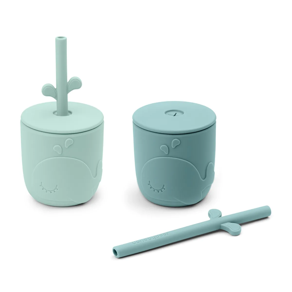Kopperne med sugerør i 2-pak er i to blå nuancer. De søde sugerør passer perfekt i alle små børns kopper uden at vippe, og lågene kan bruges til de Peekaboo tudkop. også.