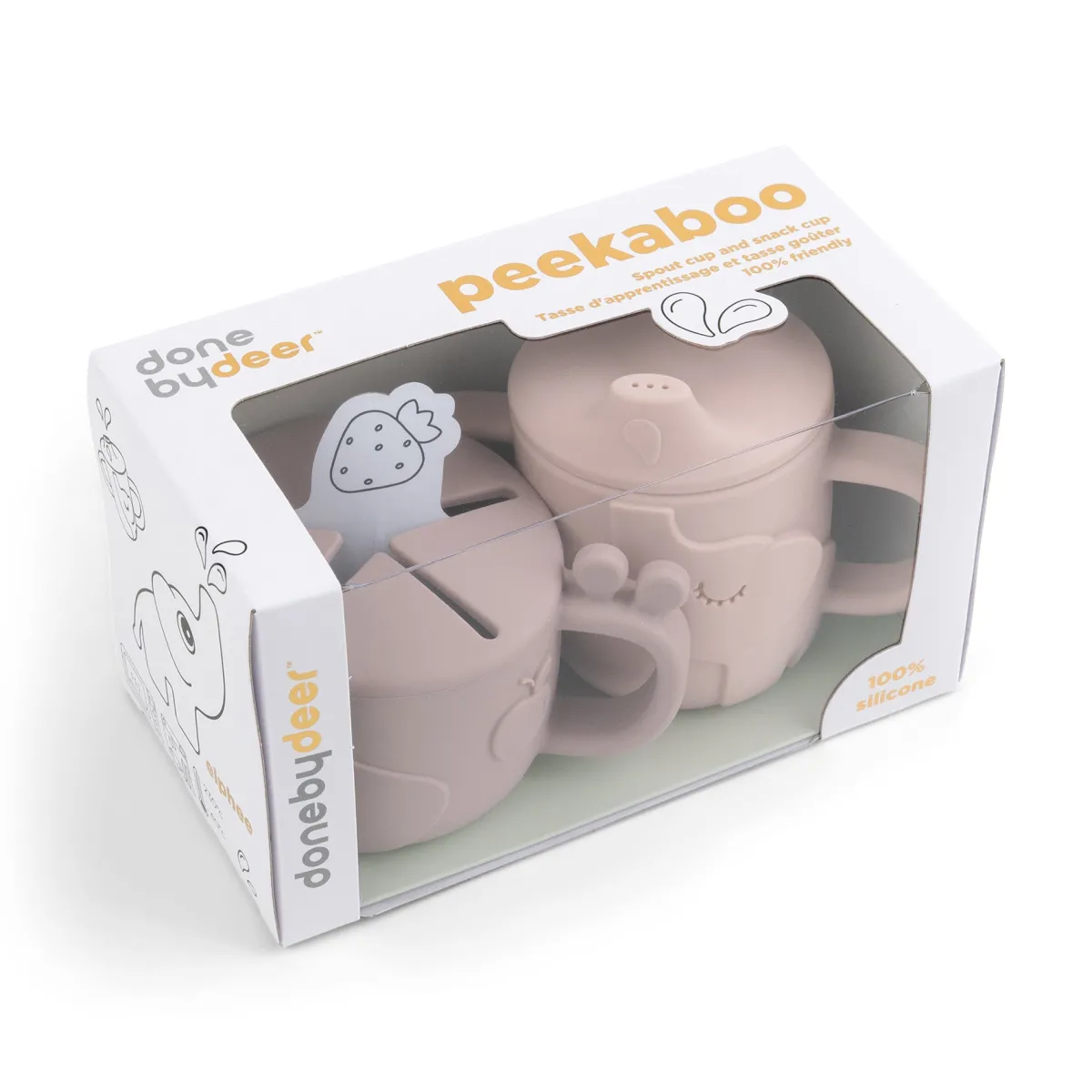 Peekaboo tud/snack kop sættet i pudder er det ultimative startsæt til alle små børn, der begynder at udforske verdenen af snacks og lærer at drikke selvstændigt.