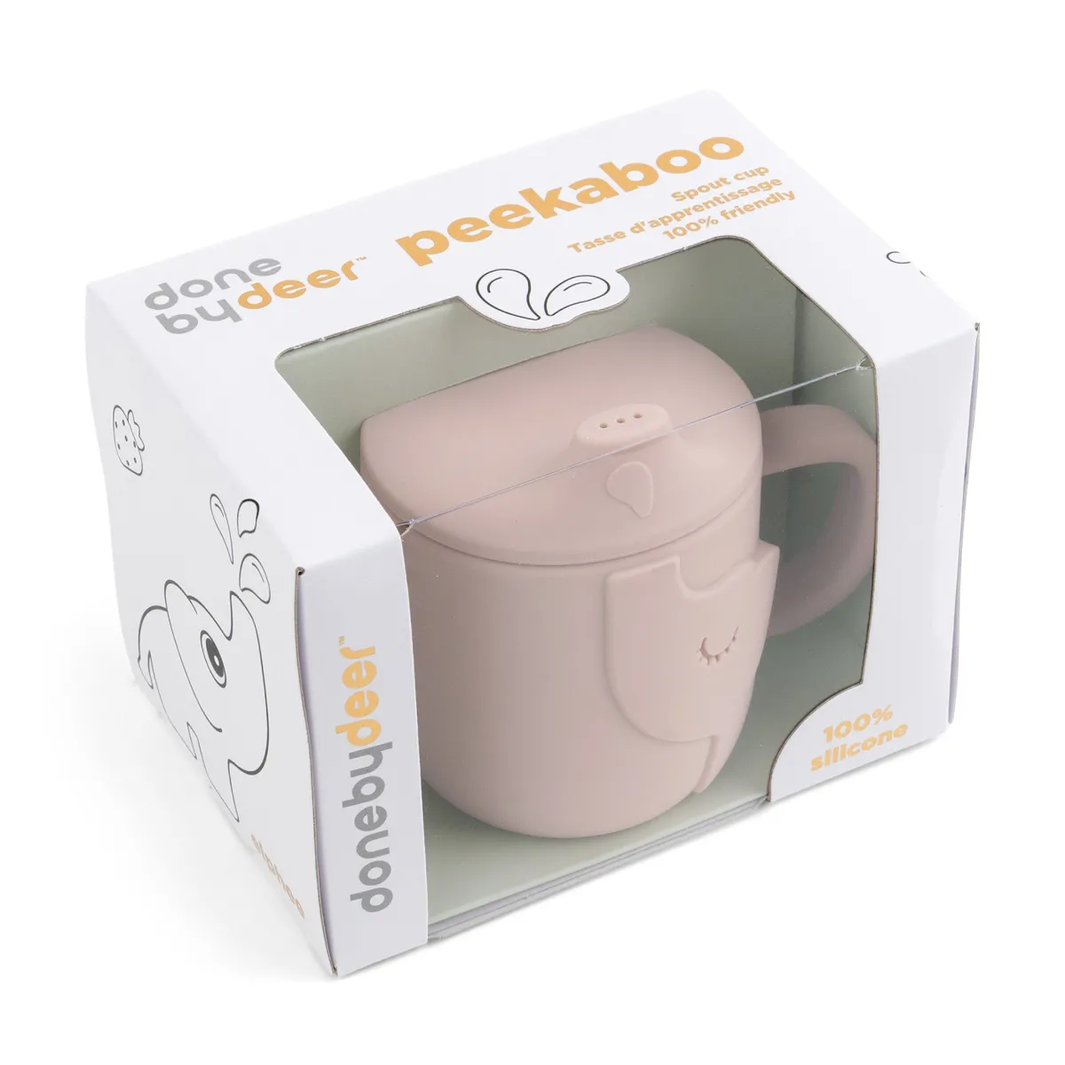 Den søde Elphee kop er lavet af fødevaregodkendt silikone, som gør den brudsikker og giver et godt greb. Tåler opvaskemaskine og kan bruges i ovn, mikroovn og fryser.