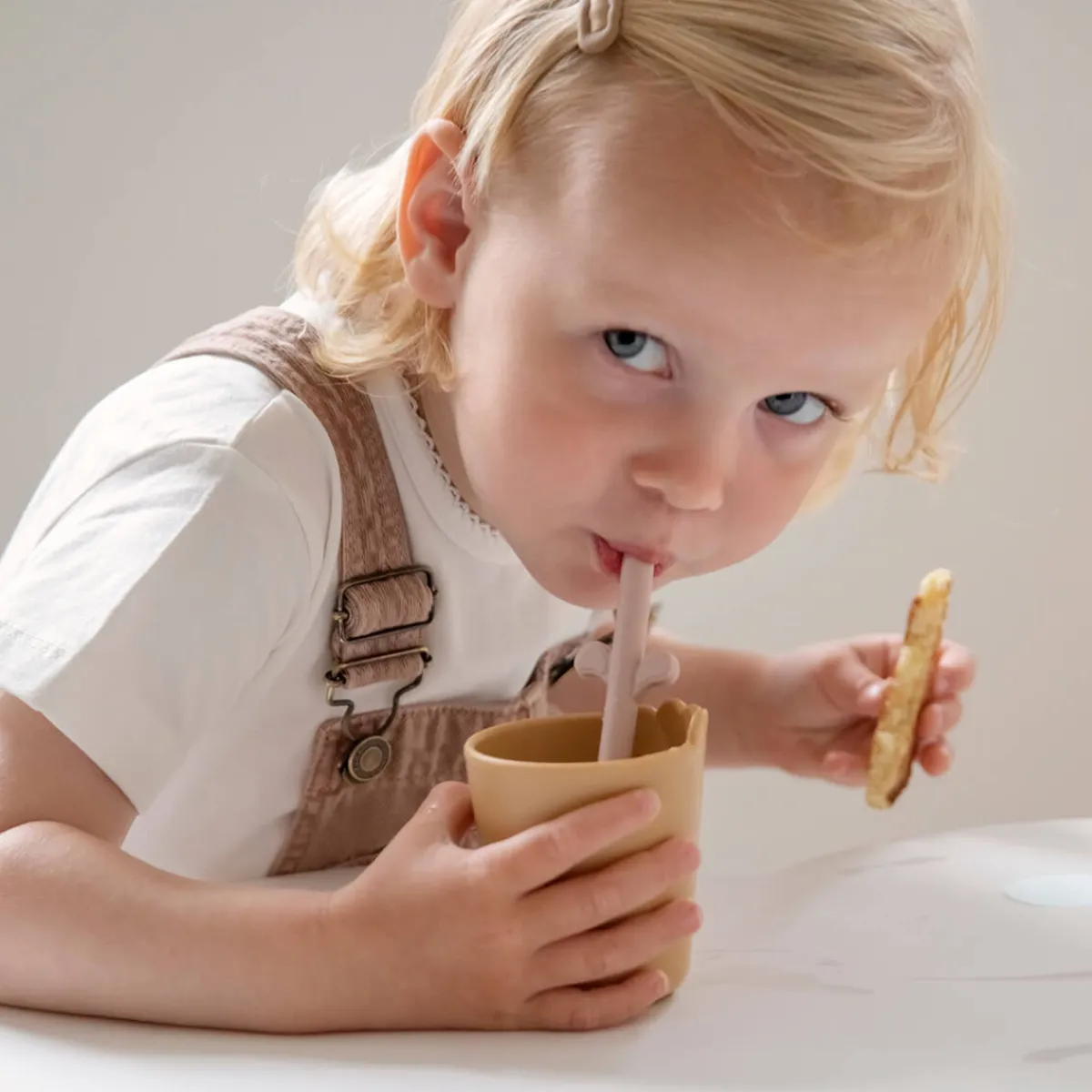 Den genanvendelige kop til børn er fremstillet i Danmark. Efter utallige familiemåltider, fester og picnics kan koppen sorteres som hård plast og genbruges til nye produkter i hverdagen.
