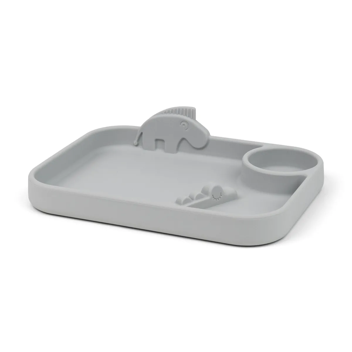 Børnene vil nyde at have de sjove dyr med til måltiderne – lad Zebee vogte maden og Croco tage en svømmetur. Den grå tallerken matcher de øvrige dele af Peekaboo-serien og er pakket i en flot dekoreret gaveæske.