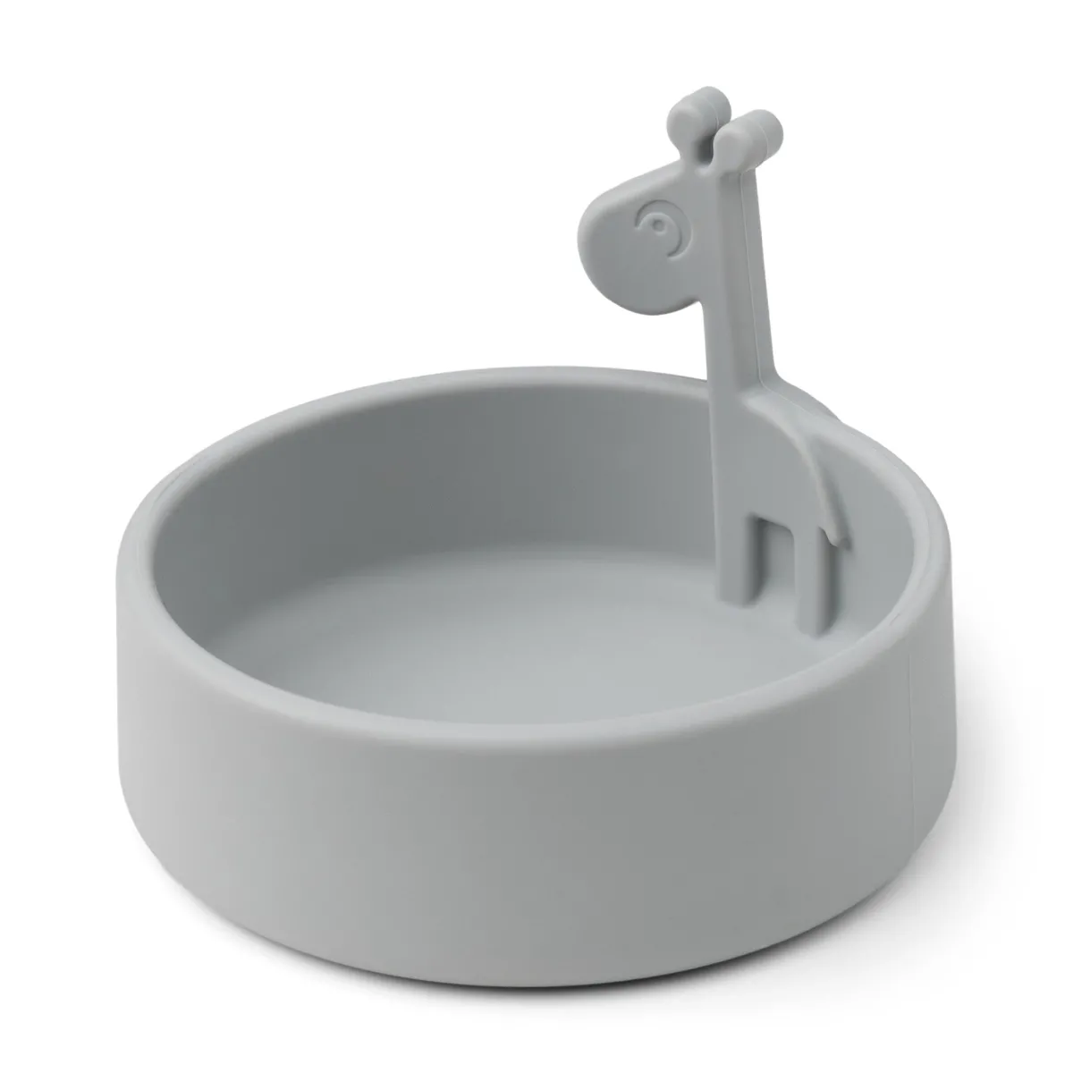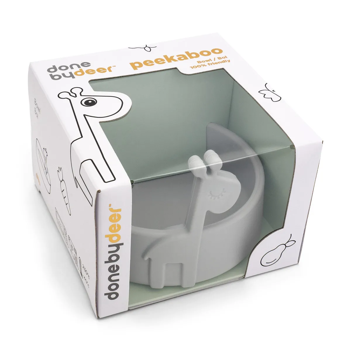 Børnene vil nyde at have den søde giraf med til måltiderne – og pas på, den lange hals er perfekt til at stjæle en bid. Den praktiske skål er i en blød grå farve, der matcher Peekaboo-serviset, og leveres i en flot dekoreret gaveæske.