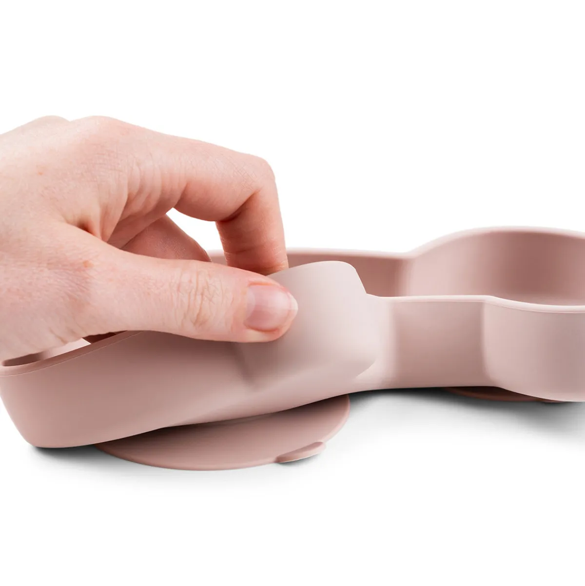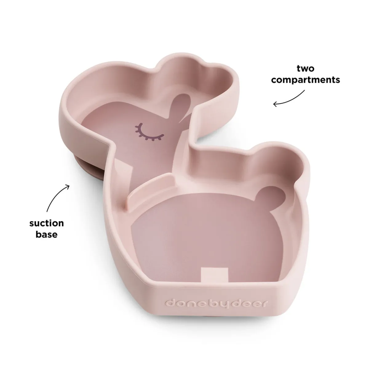 Denne Lalee Stick&Stay snacktallerken i en sød pudderfarve er fremstillet af 100 % fødevaregodkendt, BPA-fri silikone, hvilket gør den helt sikker for dit barn. Sugebasen forhindrer dit barn i at skubbe, tippe eller kaste tallerkenen. Under Lalees hale og øre gemmer der sig to flapper, som er nemme at løsne, og som gør det nemt at løfte tallerkenen fra bordet.
