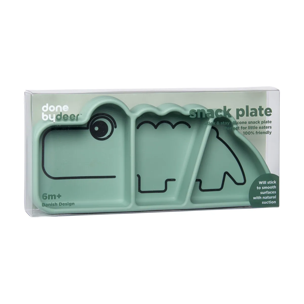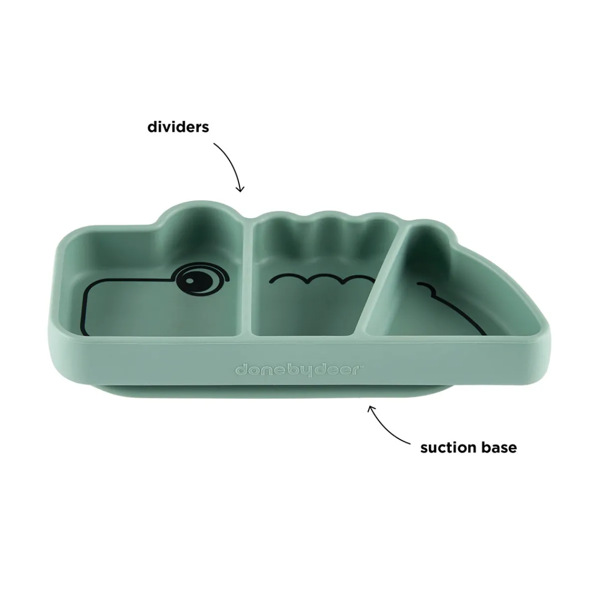Krokodillens Stick&Stay inddelte tallerken med tre separate rum bliver på plads og hjælper de små med at spise. Croco er klar til at gøre mellemmåltiderne sjove!
