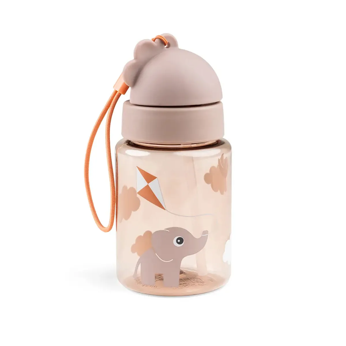 – Den pudderfarvede, gennemsigtige flaske har et praktisk sugerør, og når den er gemt væk, forhindrer låget, at der spildes væske