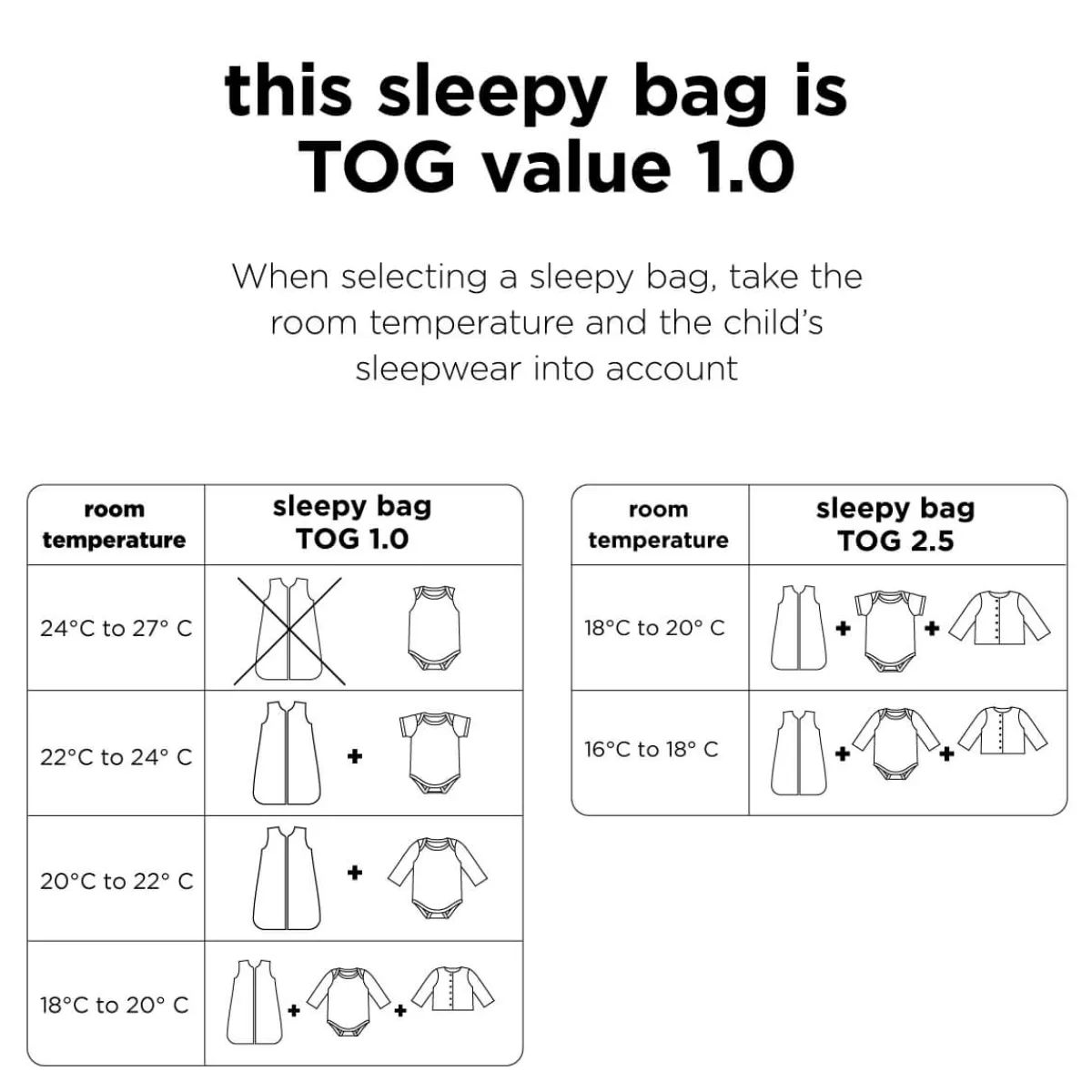 With a TOG value of 1.0, it’s perfect for warmer nights. The adjustable armholes ensure a customised fit, while the YKK safety zipper makes dressing and diaper changes easy. In a lovely blue colour with charming motifs of Antee, Croco, Elphee, and Nozo, this sleeping bag brings both comfort and sweetness to bedtime.