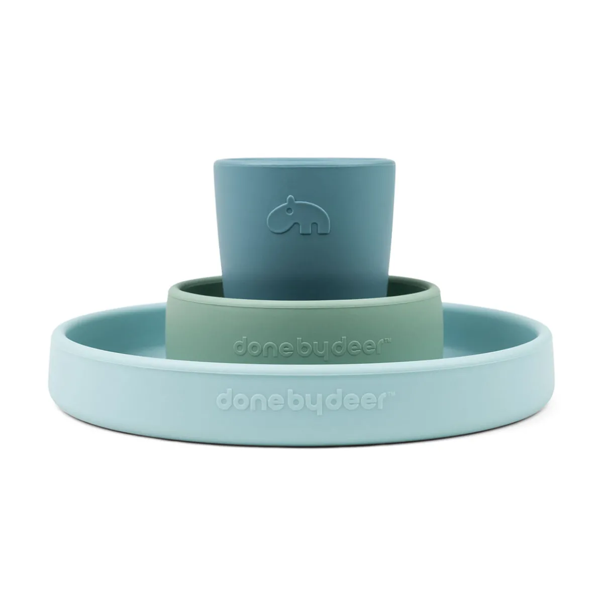 Silikone spisesættet med Happy Clouds vil gøre måltiderne sjove. Det praktiske, skridsikre og grebsvenlige silikone startsæt indeholder en børnetallerken, en skål og et mini kop. Perfekt service til både babyer og småbørn.