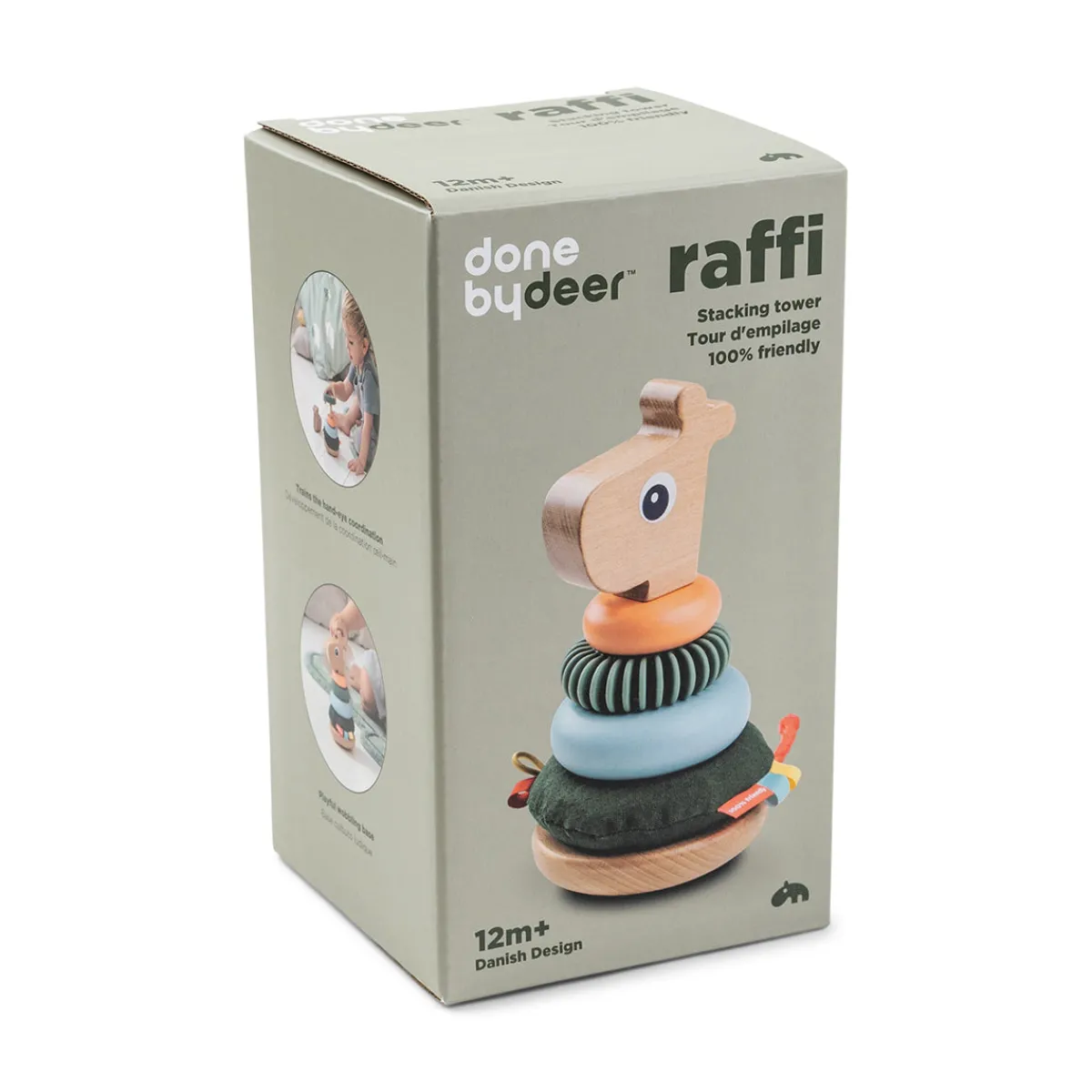 Stabletårnet Raffi har fire ringe, som dit barn kan stable for at bygge giraffens krop. Lad dit barn nyde de mange sanseflader, stimulerende funktioner og mange timers leg med Deer friend Raffi.