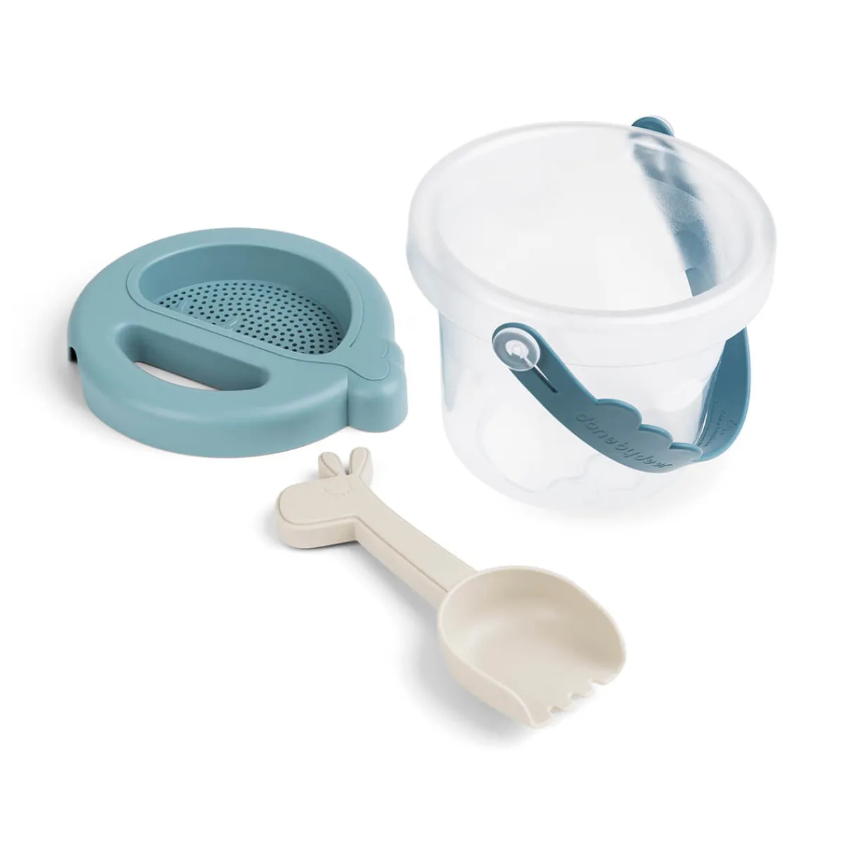 Spanden har et sjovt Wally-låg med et håndtag, der også er en si – perfekt til at finde skatte i sandet. Sættet er perfekt til at lave sandfigurer, bære vand og til at studere små ting i den gennemsigtige spand.