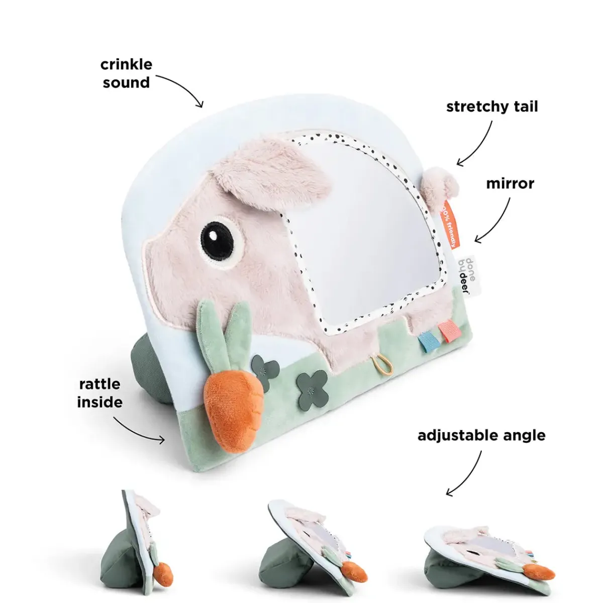 • Spejlet er blødt og sikkert for babyer at lege med
