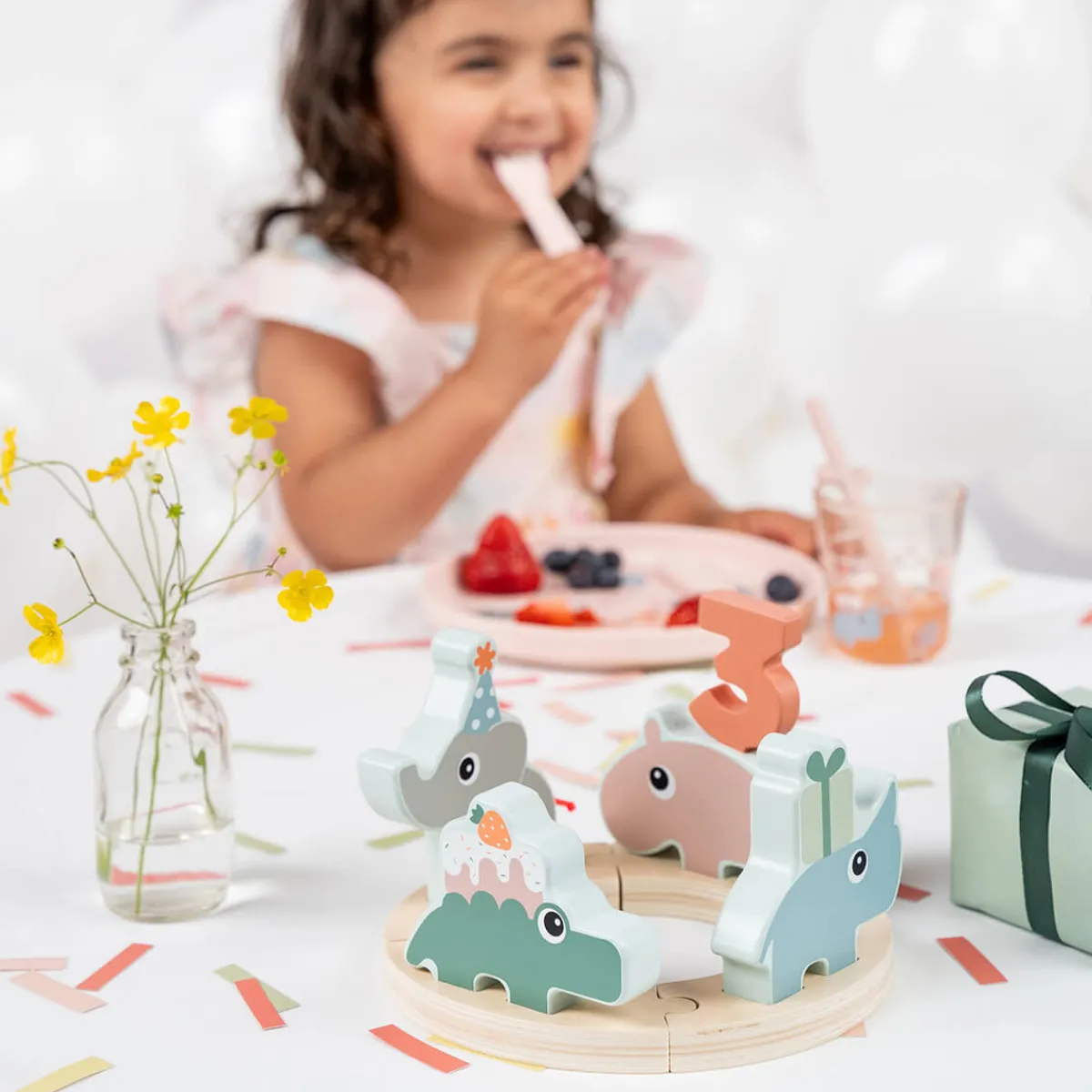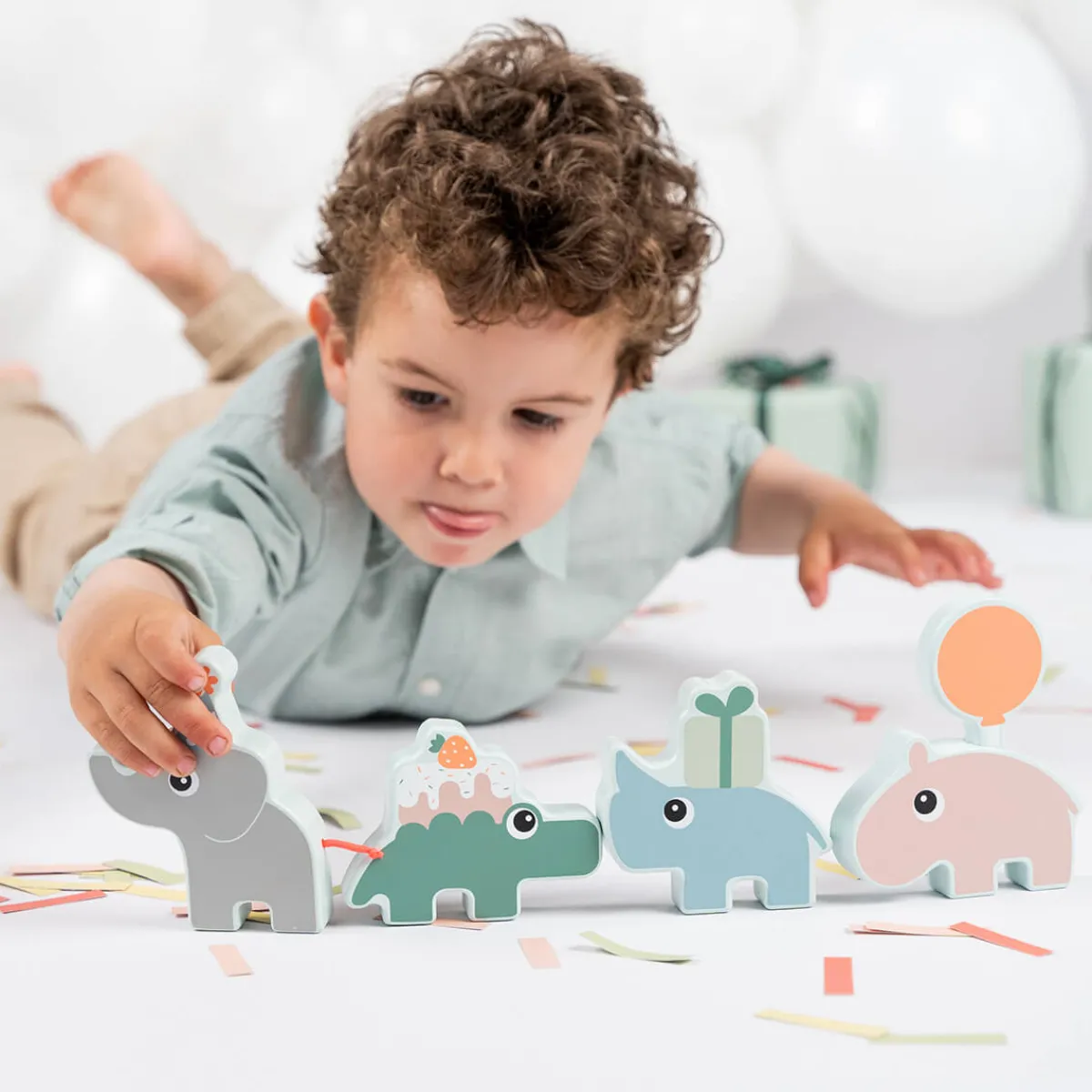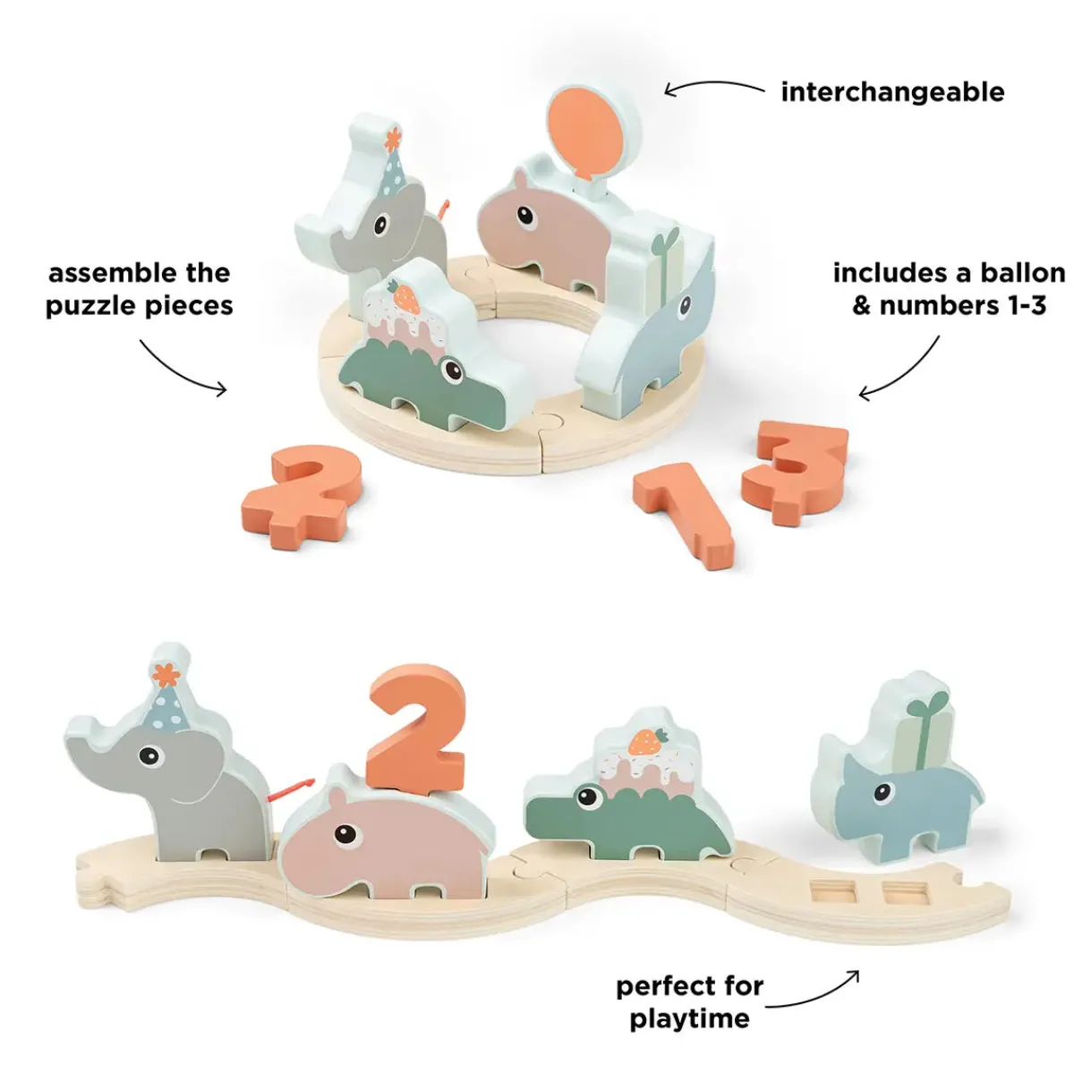 Brug denne charmerende parade som et dekorativt midtpunkt eller et fødselsdagstog. Paraden er lige så sjov at lege med, som den er at vise frem, og børn vil elske at lege med Deer friends og tælle tallene, mens de fejrer.