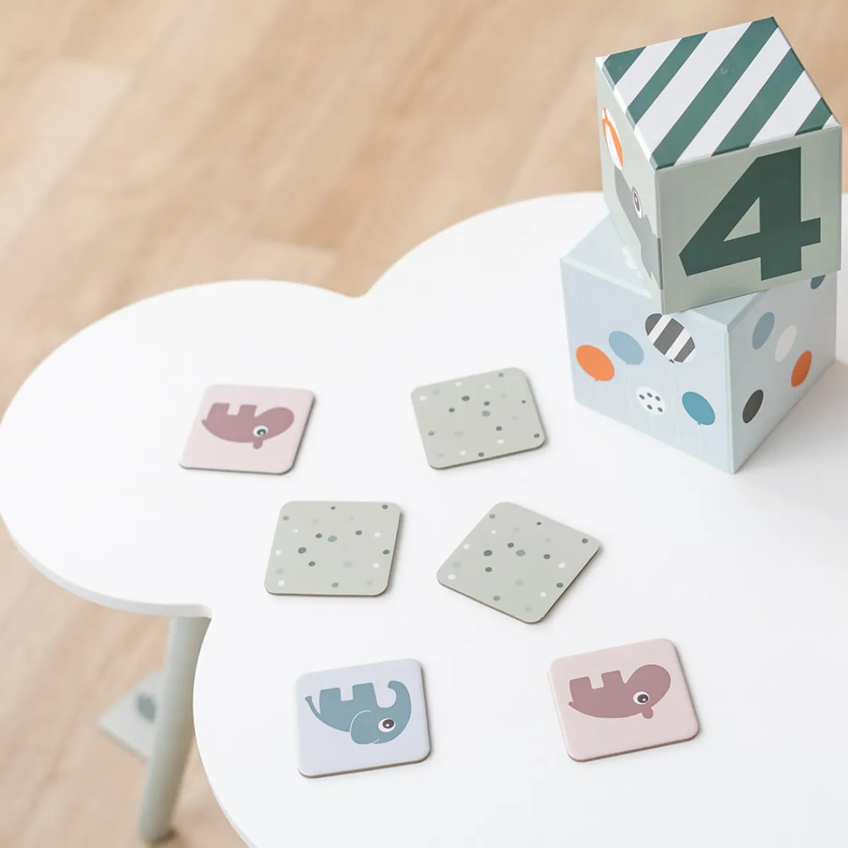 Huskespil med 16 papkort dekoreret med vores Deer friends i sjove farver for visuel stimulering. Dette spil er et godt værktøj til at udvikle dit barns hukommelse, koncentration og kognitive færdigheder, og det er en sjov måde at tilbringe kvalitetstid sammen på.