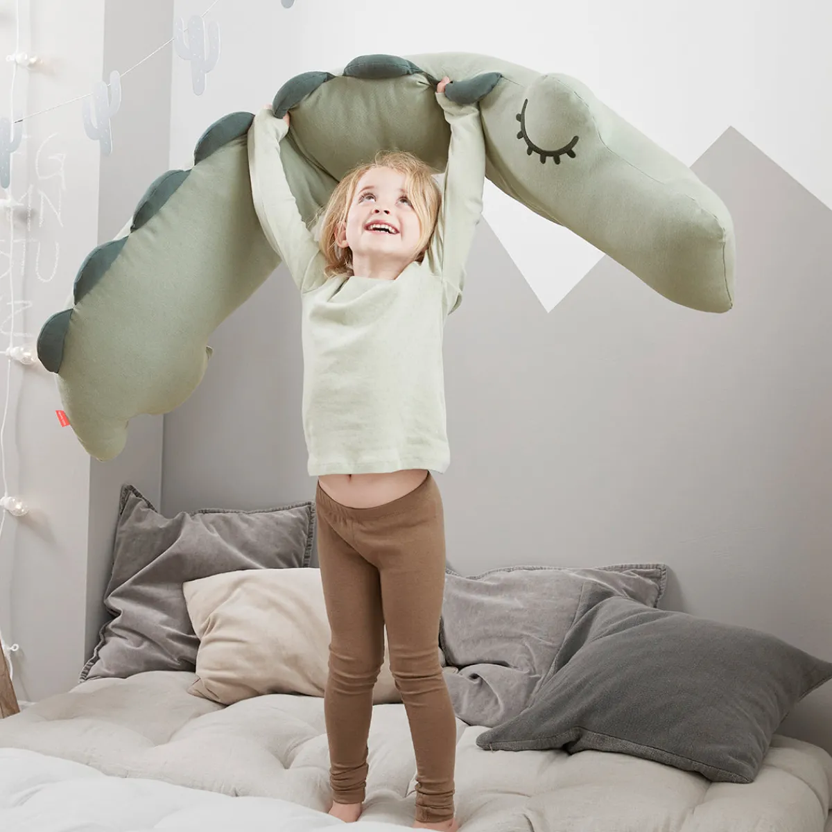 Den store croco i blødt økologisk jerseystof er skånsom mod din hud og hjælper med at lindre smerter i hofter, bækken og ben under graviditeten. Når din baby bliver ældre, kan puden bruges som et sjovt stykke legetøj, en behagelig stol eller som et lille barns sovekammerat.
