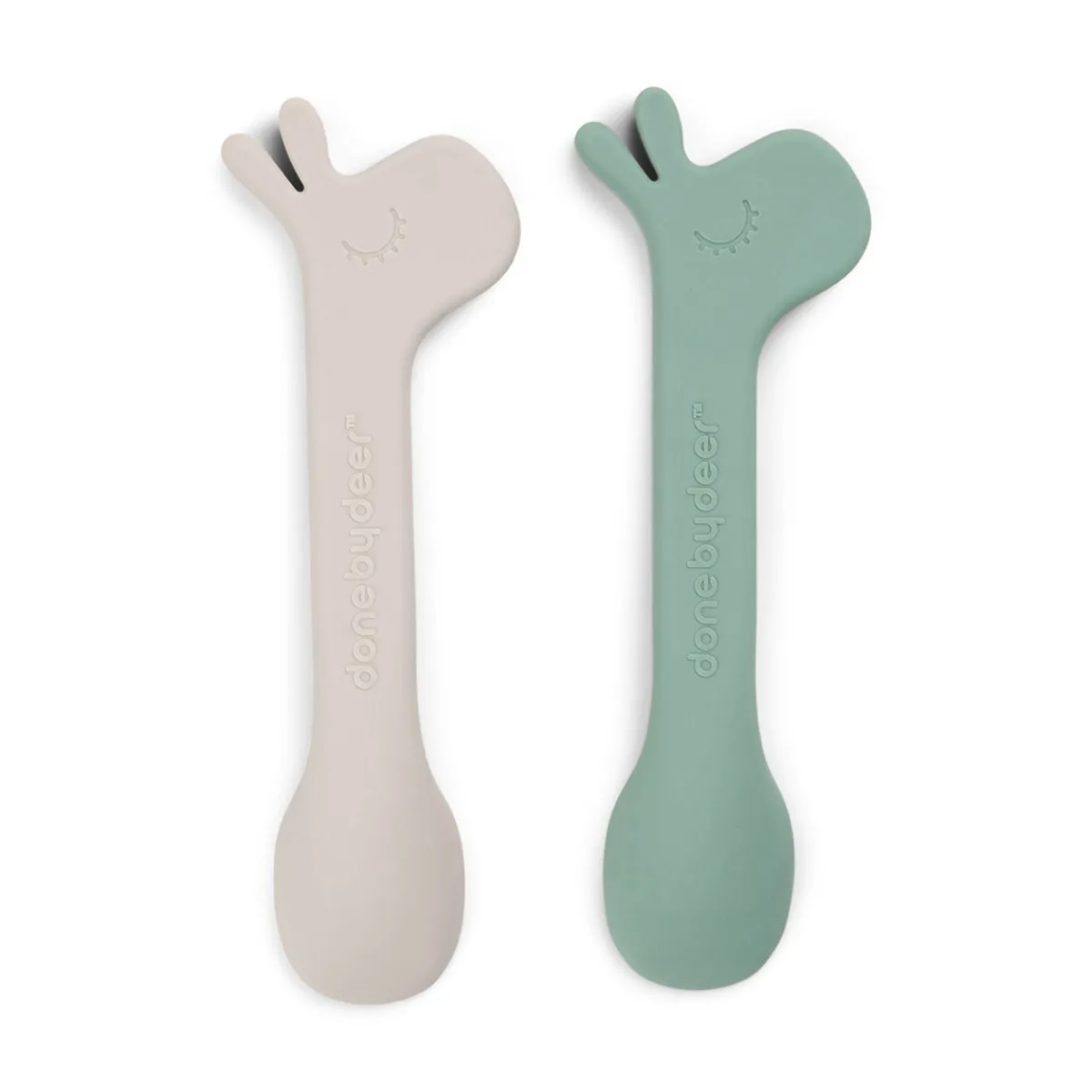 En praktisk 2-pak med skeer – en i grøn og en i sand. Perfekt til at spise alle favoritterne og prøve ny mad.