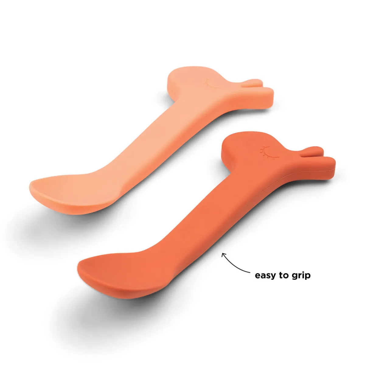 En praktisk 2-pak med skeer – en papaya-farvet og en koral. Perfekt til at spise alle favoritterne og prøve ny mad.