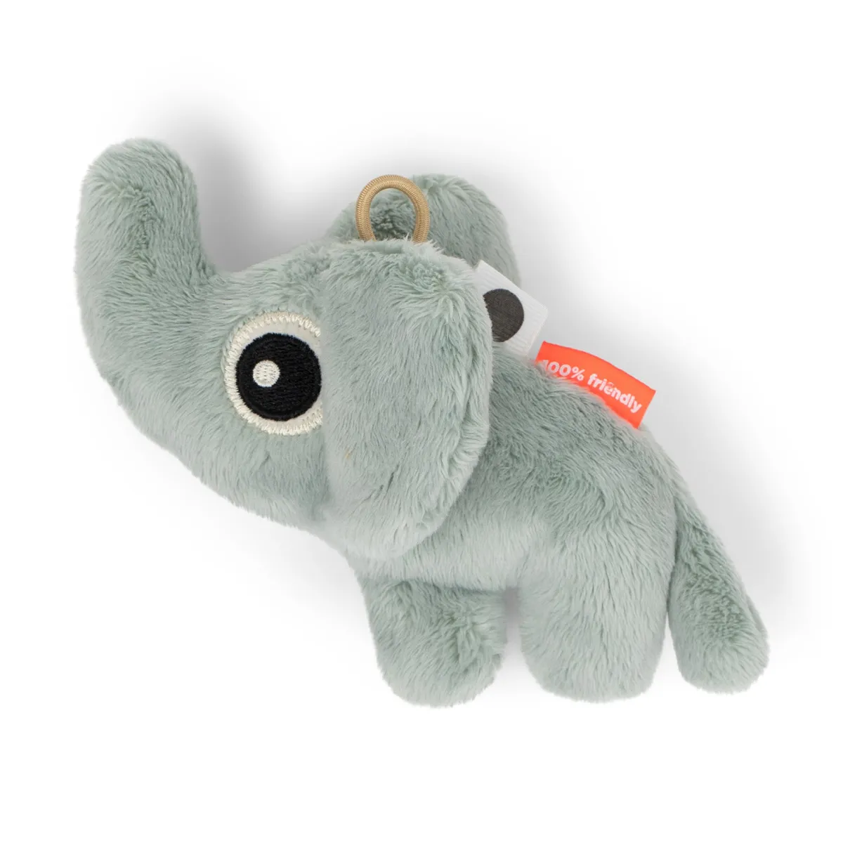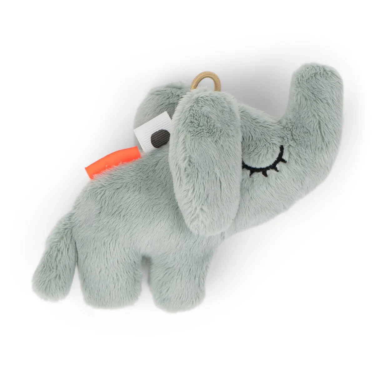 Med den elastiske løkke er det nemt at fastgøre den lille sanselegetæppe til en legemåtte, klapvogn, autostol eller aktivitetscenter ved hjælp af en Ophængsring. Den superbløde lille Elphee-rangle har en blød blå farve.