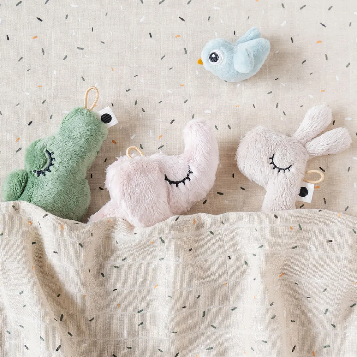 Den søde Rangle – Elphee – Pudder i en blød pudderfarve er et perfekt lille stykke legetøj, der er designet til at stimulere dit barns sanser. Med sensoriske funktioner vækker den nysgerrighed, mens den bløde tekstur glæder små fingre.