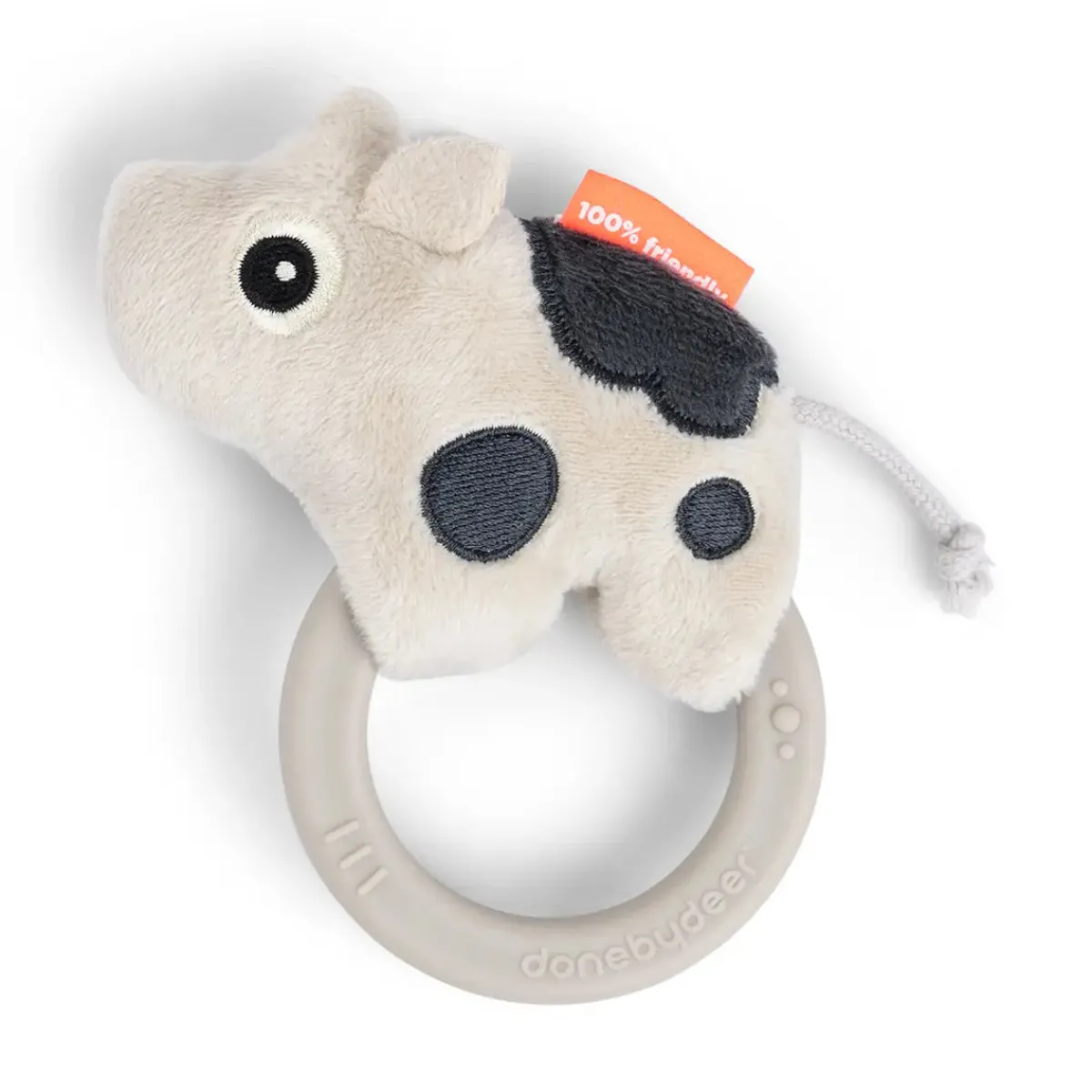• Ringen gør det nemt for de små fingre at holde fast og aktivere lyden