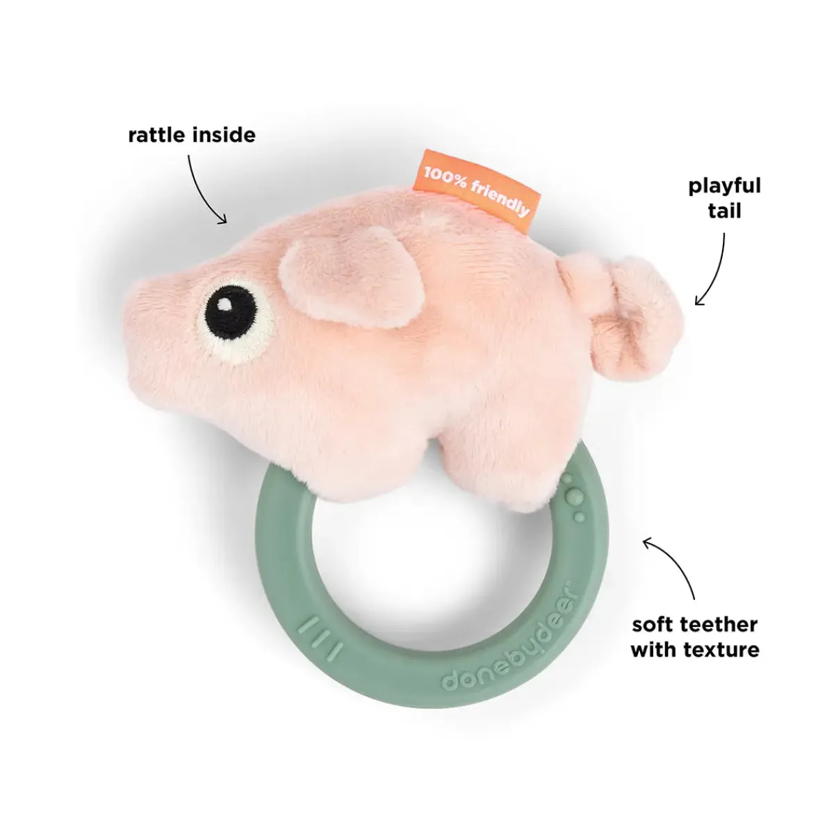 • Ringen gør det nemt for de små fingre at holde fast og aktivere lyden