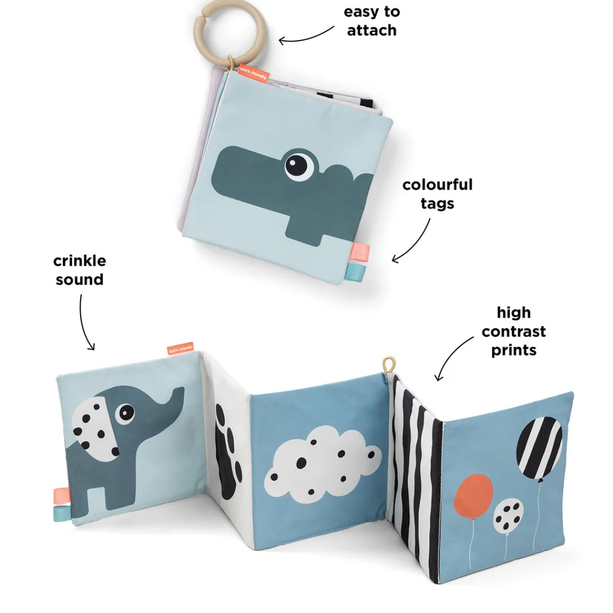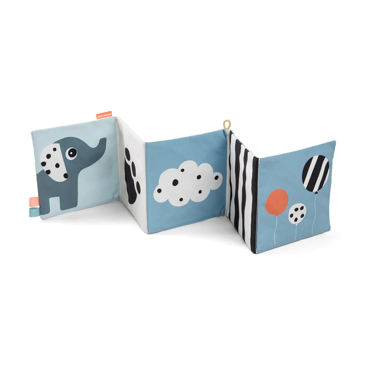 Folde-ud stofbogen med Deer friends er et udviklingslegetøj, der anbefales fra 0 måneder. Med kontrasterende sort/hvide sider til nyfødtes visuelle stimulering og levende, sjove sider til ældre babyer imødekommer den skiftende præferencer. De knitrende papirsider engagerer din babys høresans, mens de farverige tags inviterer til taktil udforskning.