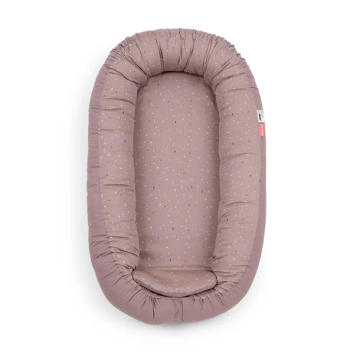 Lys Pudder cozy nest er drysset med festlig confetti på indersiden og har en solid pudderfarve på ydersiden. Babynesten er lavet af blødt bomuld med polyesterfyld og har en blød skummadras i ét stykke.