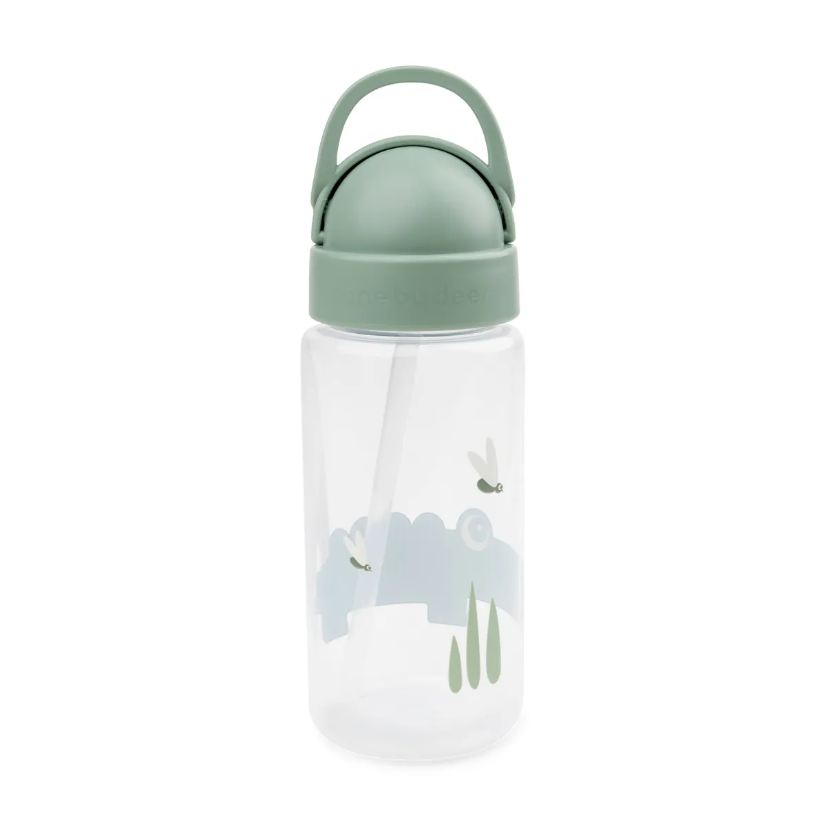 Croco og ildfluer pryder denne vandflaske til børn og er i skønne, grønne toner.