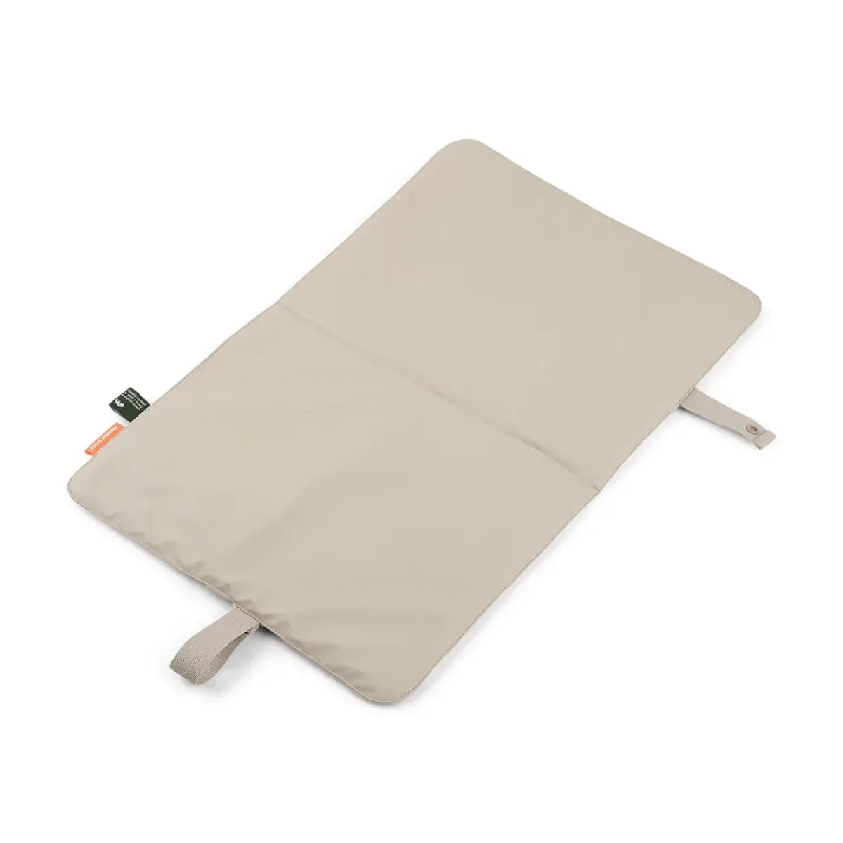 Det bløde, sandfarvede, foldbare pusleunderlag er perfekt at have med, når man forlader huset, og er designet til nemme bleskift på farten.