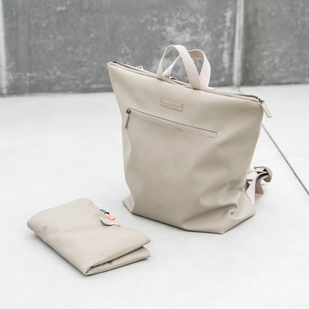 Et praktisk foldbart pusleunderlag med vandafvisende overflade og to barnevognskroge medfølger. Både de vandtætte lynlåse og den vandafvisende overflade gør rygsækken klar til hverdagens slid. Tag på eventyr med stil med denne unisex-rygsæk i en dejlig sandfarve.