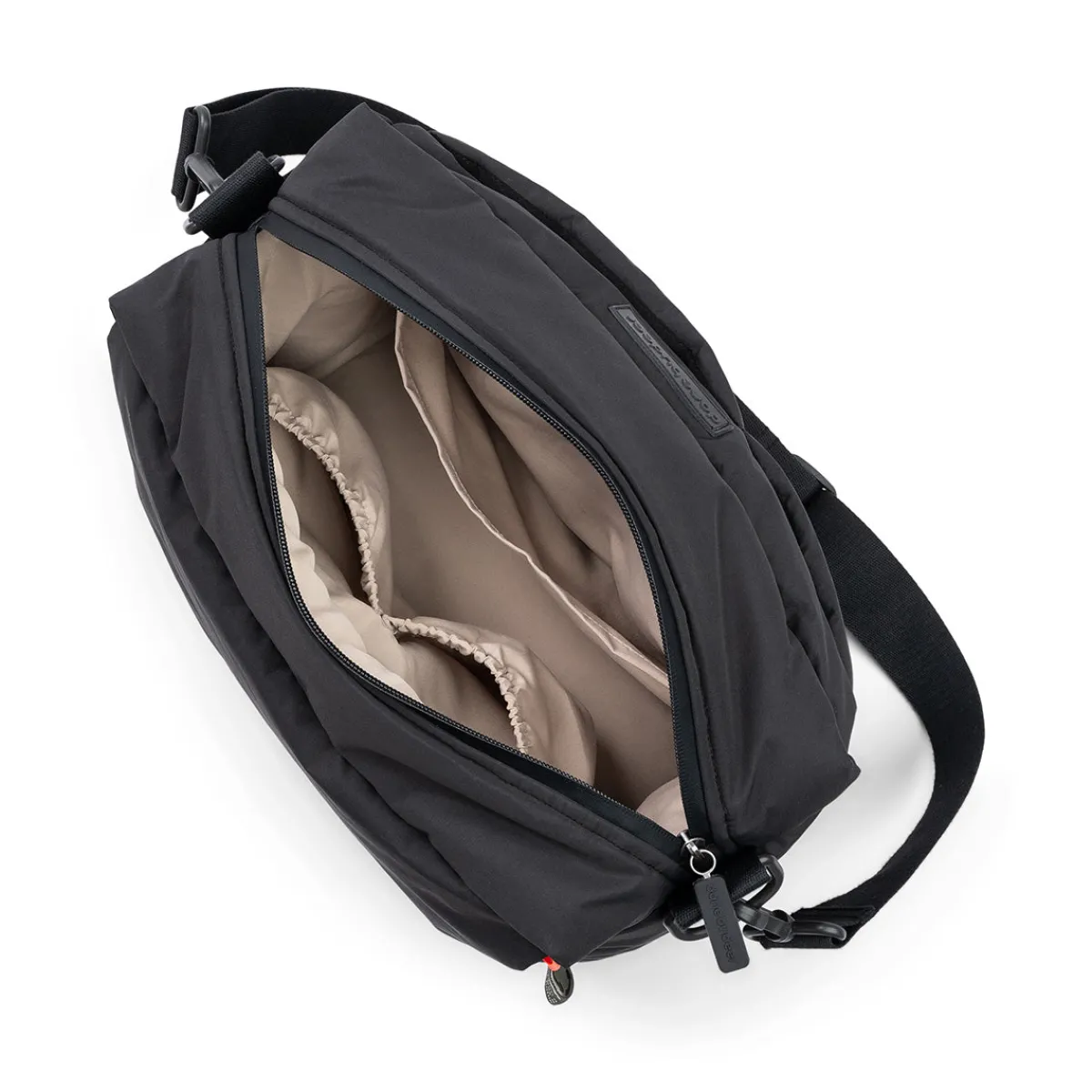 • A flexible shoulder strap and pram hooks are included