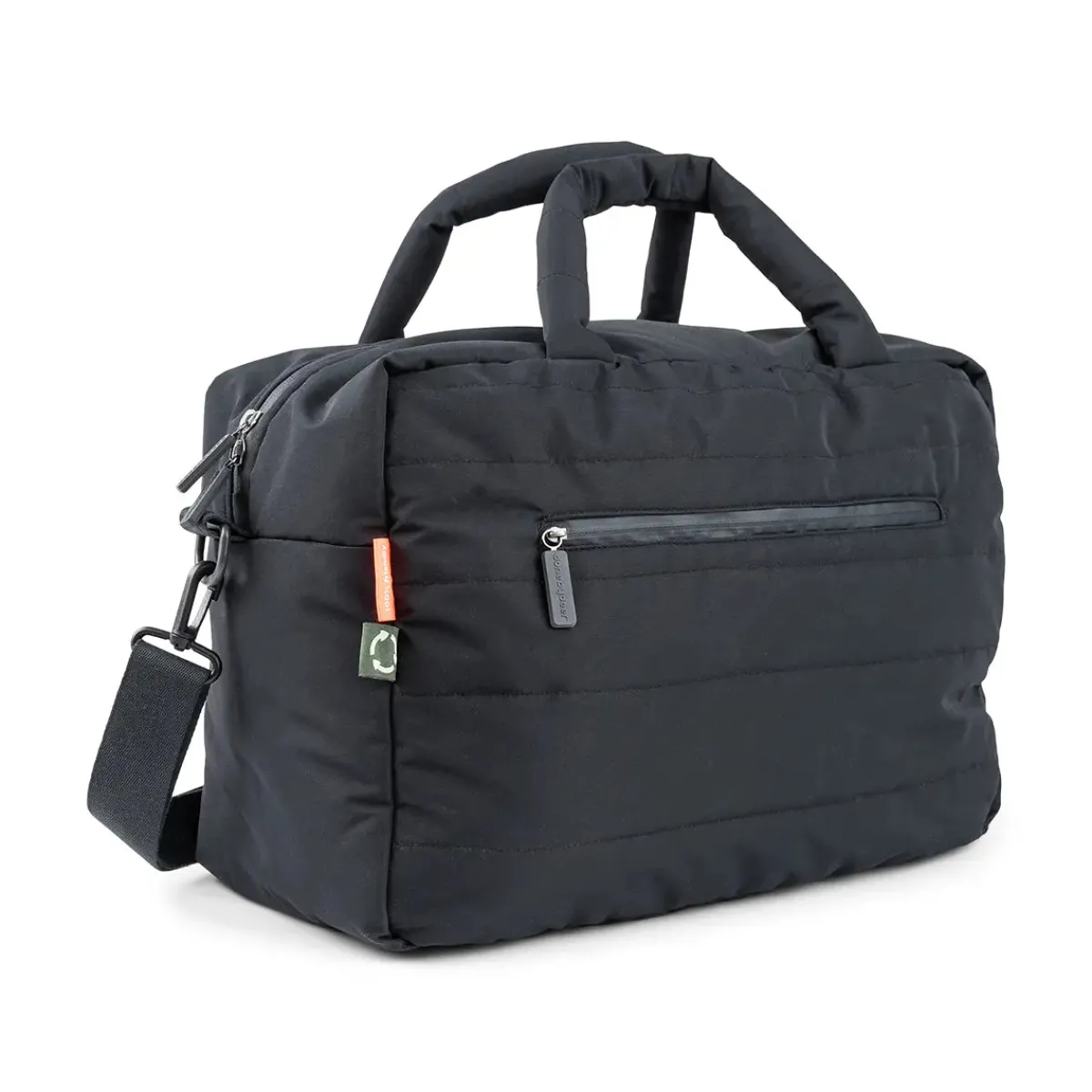 Tasken har en isoleret lomme indeni til at holde væsker varme eller kolde. Den vandafvisende overflade beskytter dine vigtigste ting mod at blive våde. Tasken og pusleunderlaget er lavet af genbrugspolyester fra 48 brugte PET-flasker.